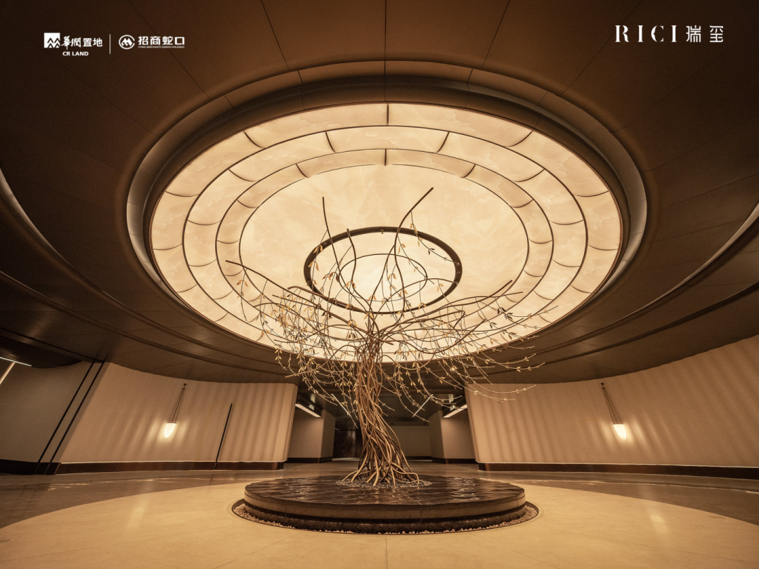 其次,中央车站本身被打造为一个充满艺术感的过渡空间。居于核心位置的是由中国先锋艺术家赵泽良设计的艺术装置“生命之树”,在圆形仿天光顶棚下熠熠生辉。暖调灯光、波浪板白沙石材墙面与环氧磨石地面,共同营造出温润氛围,让每一次下车都成为从喧嚣到私属的优雅过渡。