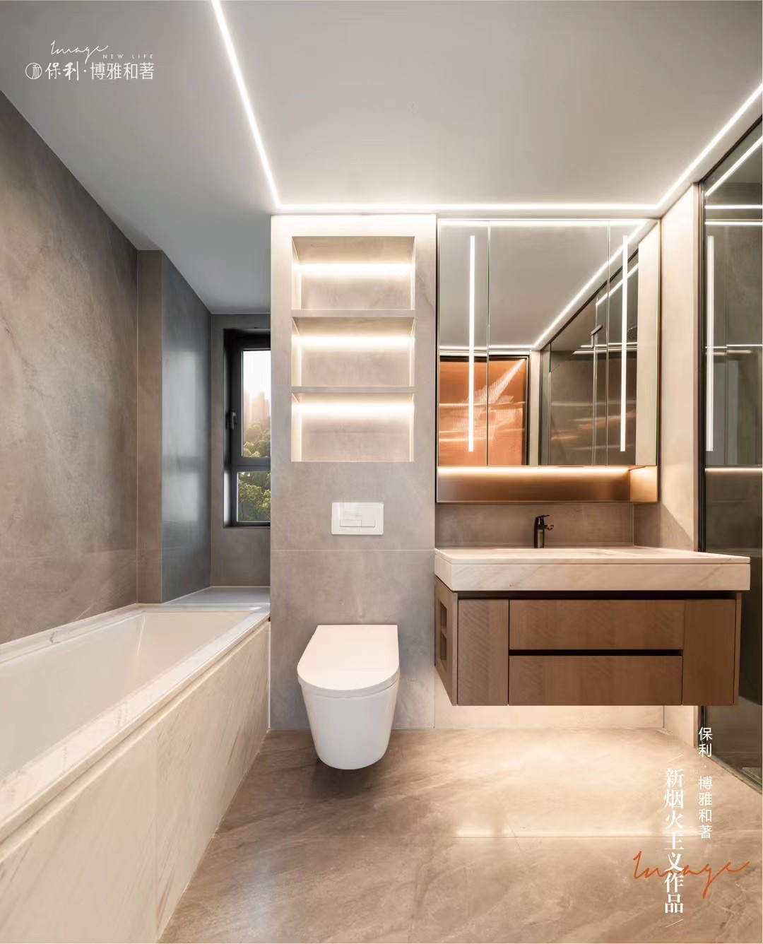 ·立体收纳:卫生间侧面巧妙增加壁龛,较同类产品多出约1平方米的收纳空间;飘窗空腔则被利用起来,增设带灯带的不锈钢壁龛,在增加储物功能的同时,也成为了空间的装饰亮点。