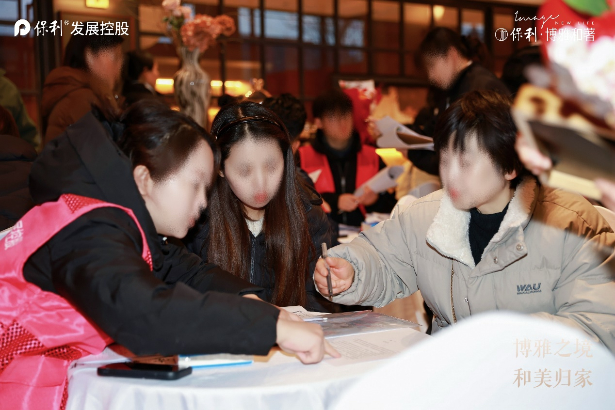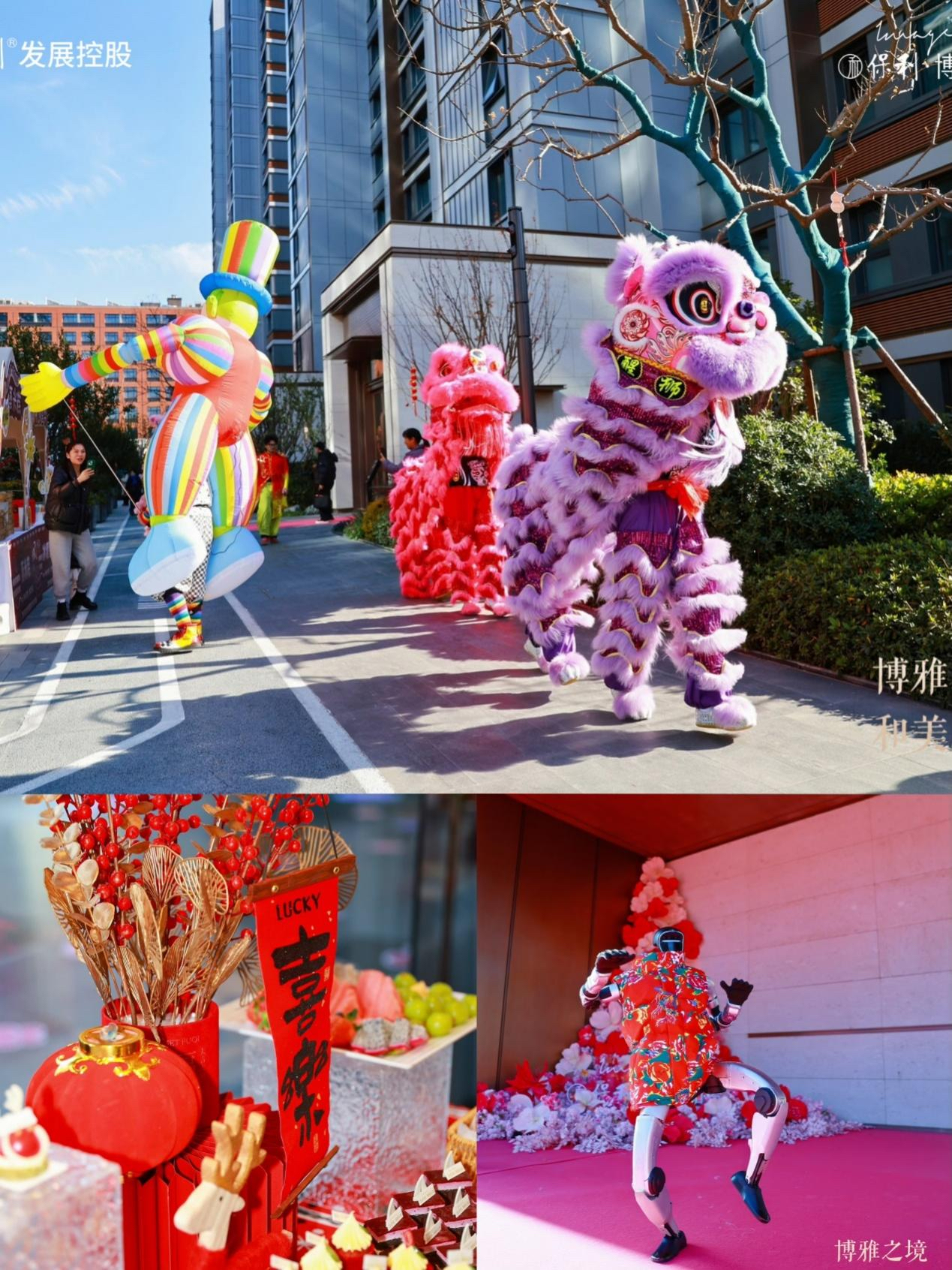 本次交付活动不仅是交接钥匙,更是一场精心策划的情感体验。保利创新采用“圆桌交付”模式,每一位业主均由专属客户大使一对一陪同,地产、物业、科技系统等多方团队集中办公,业主无需奔波排队,所有手续均可在圆桌前高效闭环完成,极大提升了收房体验的流畅度与尊贵感。交付现场,热闹的舞狮表演点燃了喜庆氛围,智能机器人互动带来了科技趣味,而乔迁喜书、定制归家礼盒等环节,则进一步将保利对业主未来生活的美好期许落笔成章、传递于心。