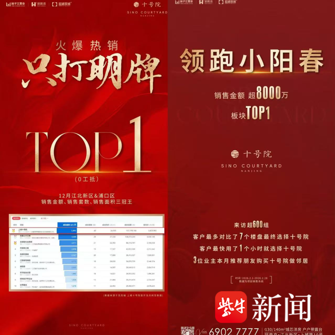 谁能想到,南京楼市最大的惊喜来自江北桥北?!当市场仍在盘整观望,上城十号院以雷霆之势震撼登场,一举揽获江北首开销售额、销售套数、销售面积“三冠王”(数据来源:克而瑞),更荣膺南京2025年下半年首开项目销冠。