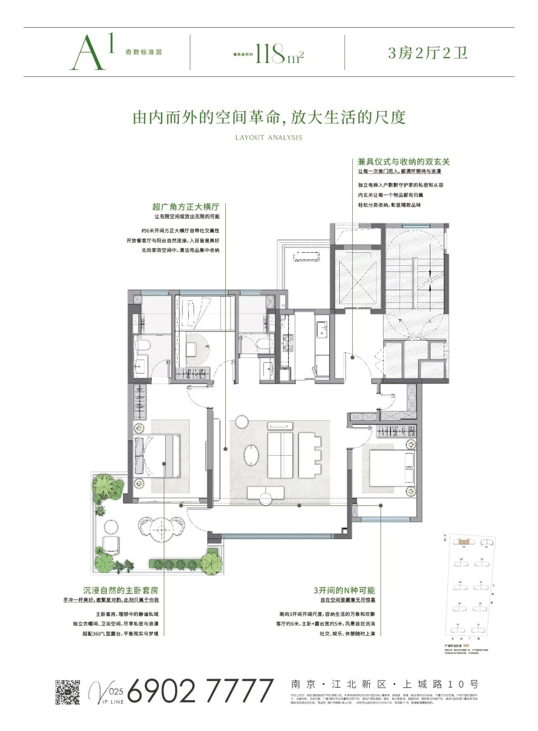 对于那些渴望桥北核心地段、憧憬低密四代宅生活,但无需140㎡超大面积的精英家庭和年轻改善客群而言,118㎡户型堪称“量身定制”。它继承了十号院所有的产品基因,并以更精巧的尺度,诠释了“全能三房”的奥义。