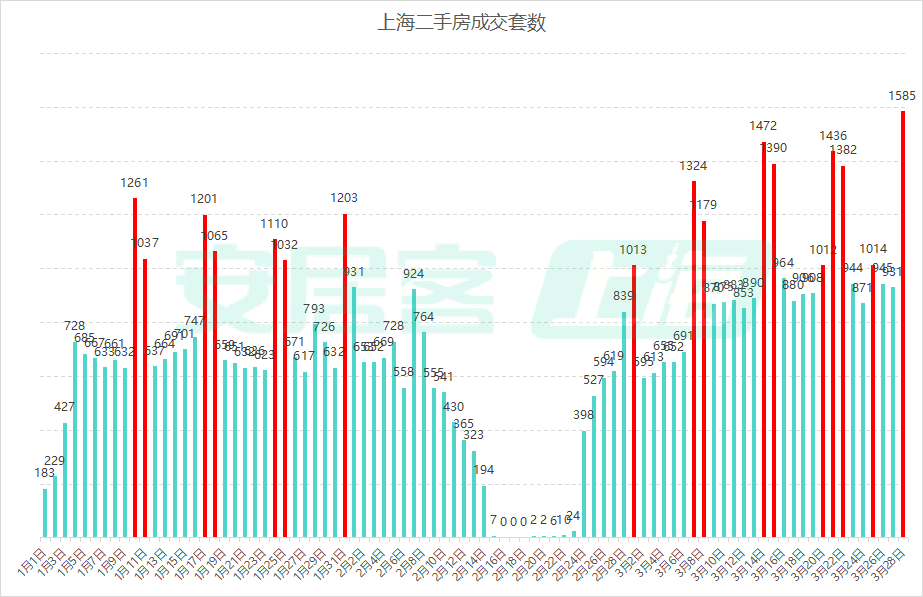 安居客上海监测数据显示,3月28日(周六),上海二手房(含商业)单日网签成交量达1585套,不仅刷新今年年内单日成交纪录,更是一举打破2025年3月15日1473套的前峰值纪录,创下近5年上海二手房单日网签成交历史新高。