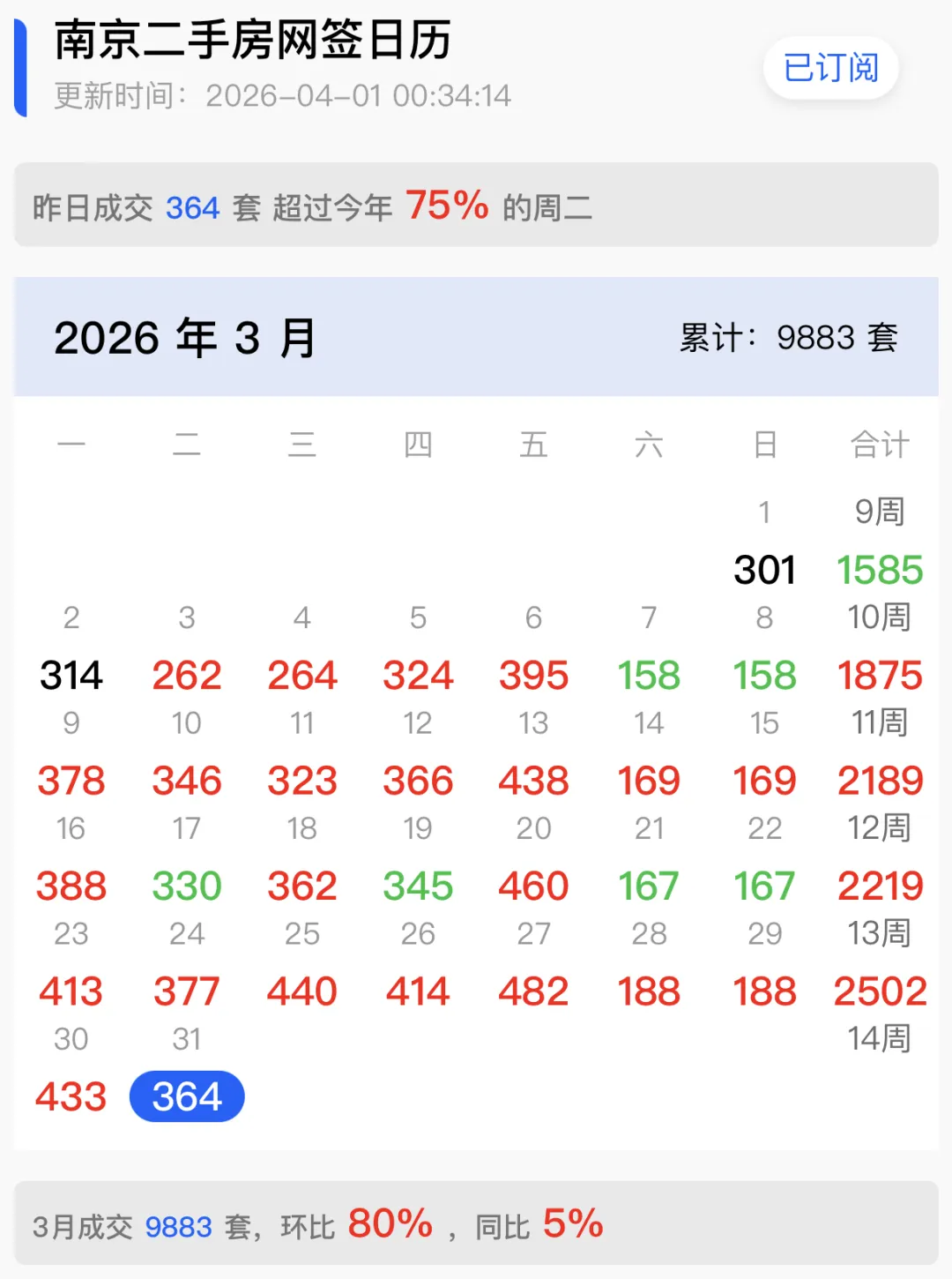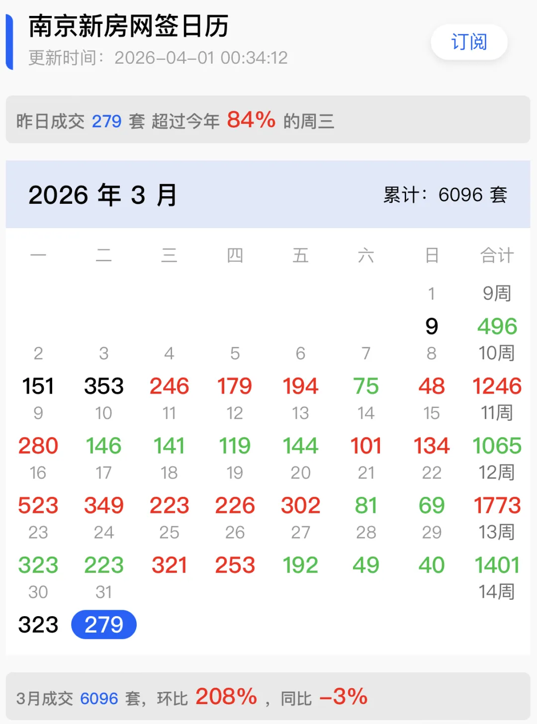 不仅是南京,全国多个城市的房地产市场热度也在升温。记者了解到,3月份上海二手房成交31215套,单月突破3万套大关,日均成交套数破千,创下近5年新高;北京二手房网签量达到19662套,创下近15个月以来的单月新高;杭州二手房共成交9359套,环比2月大幅上涨178%,创下自2025年5月以来的单月成交新高。南京房协副会长兼秘书长张辉分析指出,“金三”市场回暖首先是传统旺季效应,学区房需求集中释放,带动市场成交。其次,从国家到地方连续出台多项稳楼市政策,如南京“宁六条”中的人才房票等举措直接刺激新房成交,不但提振市场信心,也推动二手房回暖。