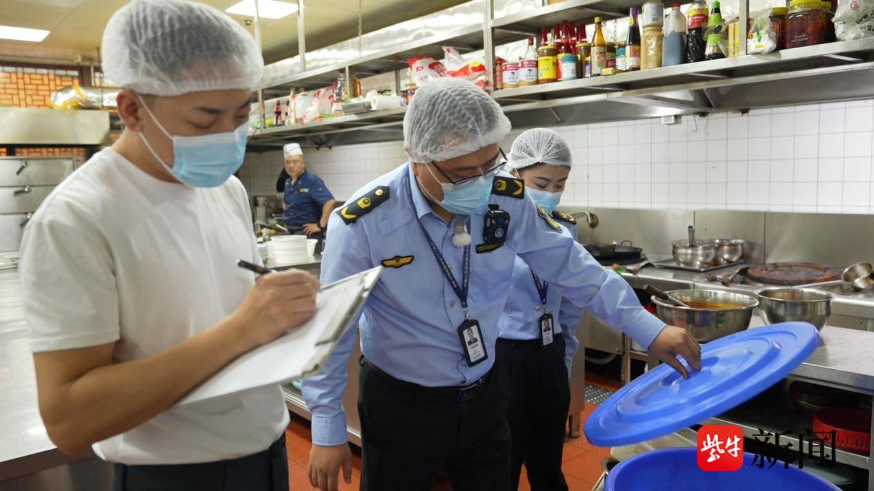 国庆假期客流量大,食品安全是重中之重。在酒店餐饮区,执法人员细致查看了就餐环境与餐具消毒情况。