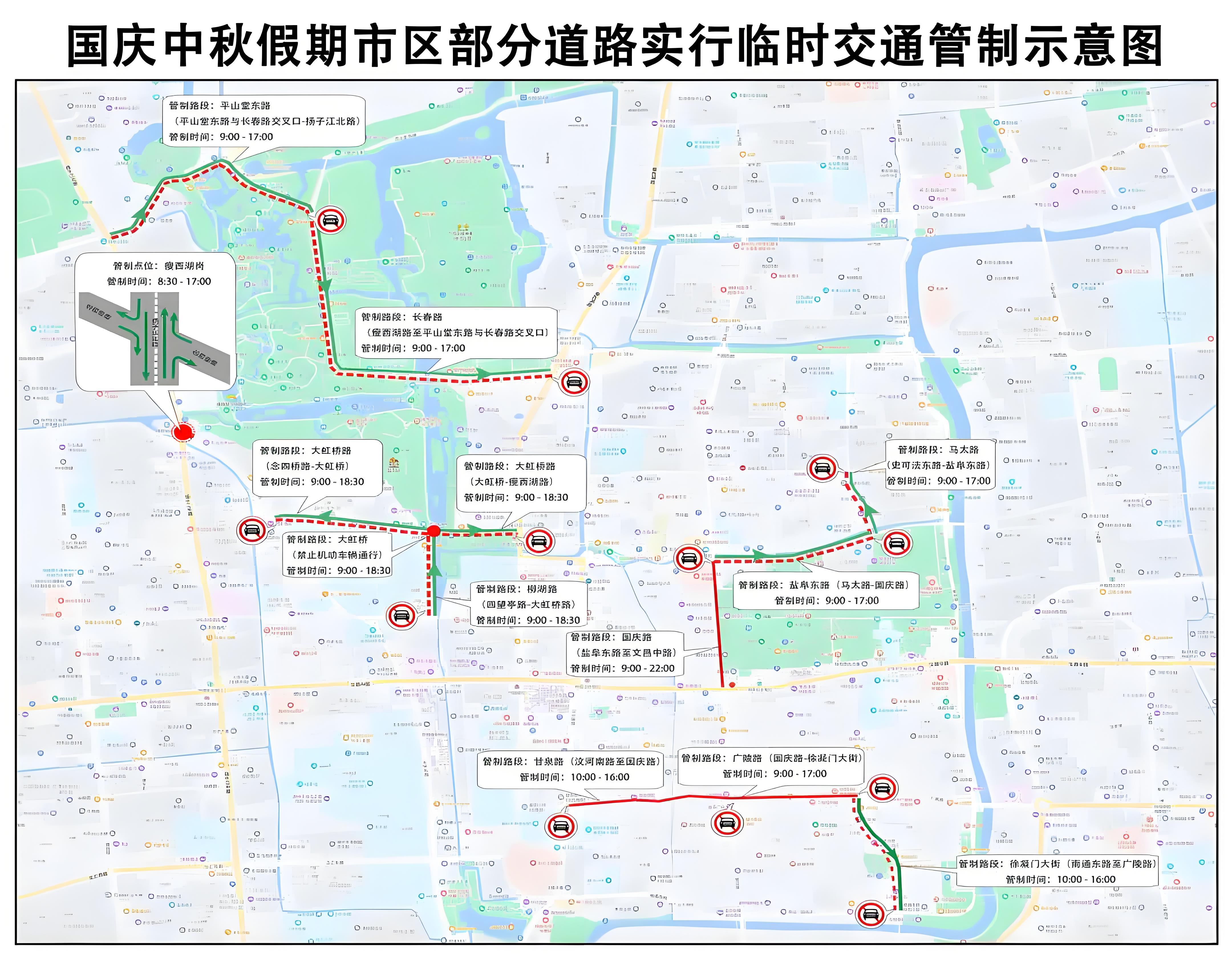 注意了:国庆中秋假期扬州市区主要景区周边部分道路实行临时交通管制