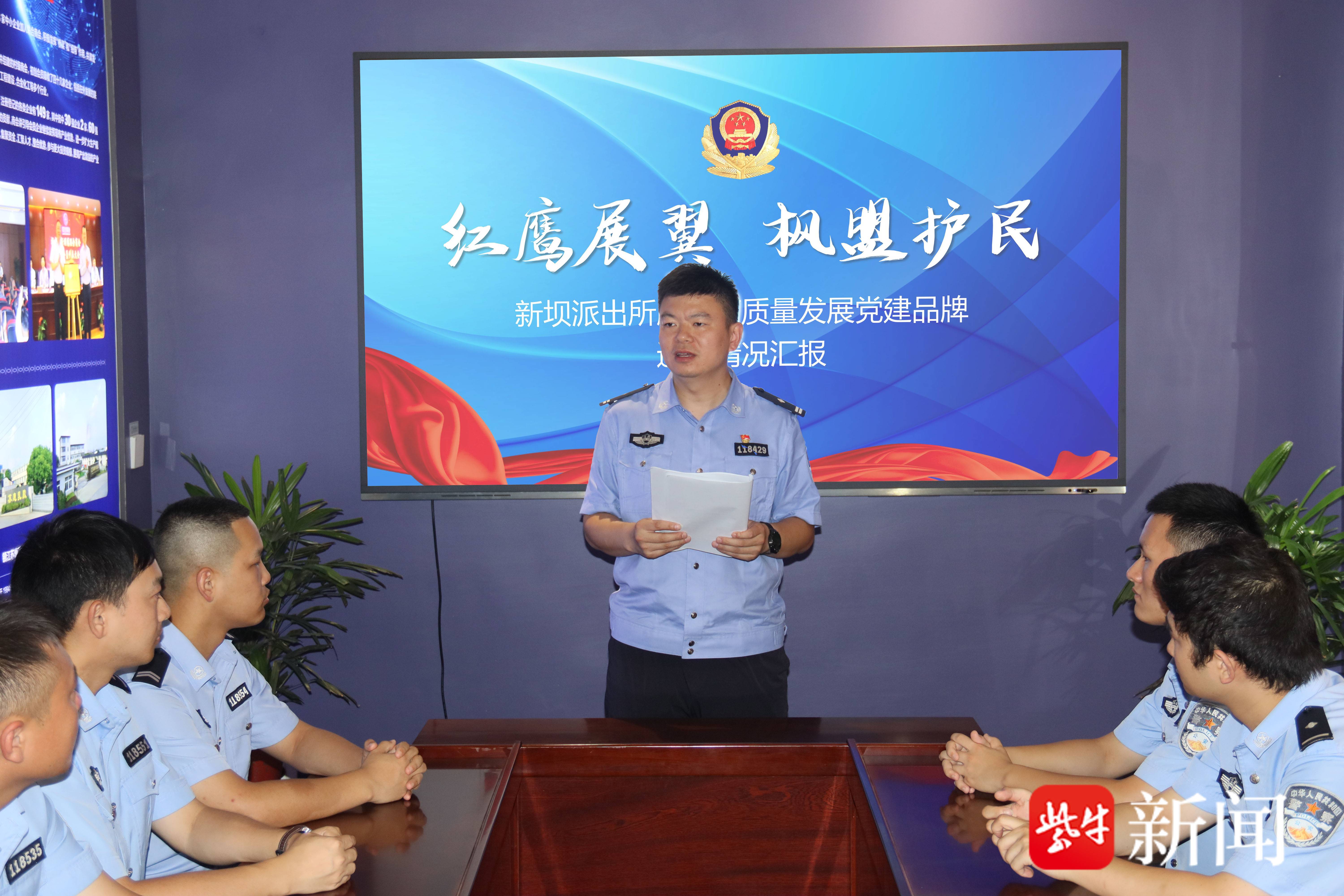 参观结束后,新坝派出所副所长张军同志详细介绍了派出所“红鹰展翼 枫盟护民”党建品牌建设进展——从“红鹰调解室”化解邻里矛盾,到“枫盟志愿队”服务辖区企业,品牌创建以来已累计为群众办实事200余件。