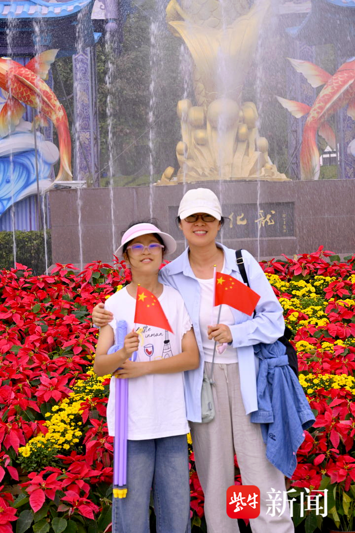 从渔湾欢乐城渔湾印象广场、“我爱中国”打卡墙到渔湾景区入口、神鱼化龙音乐喷泉广场,每当《歌唱祖国》《我和我的祖国》《我们是共产主义接班人》的旋律一响起,游客们便纷纷挥舞国旗加入合唱,歌声里满是对祖国的热爱,氛围感直接拉满,随手拍都是爱国主题大片!
