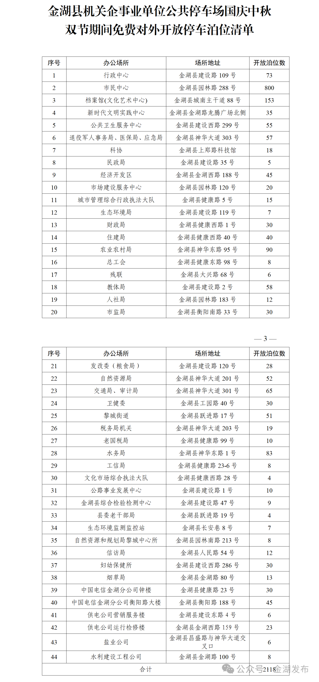 “十一”假期来临,为营造良好有序的社会秩序,共享党政机关公共资源,现就城区部分机关单位公共停车场免费对外开放有关事项通知如下: