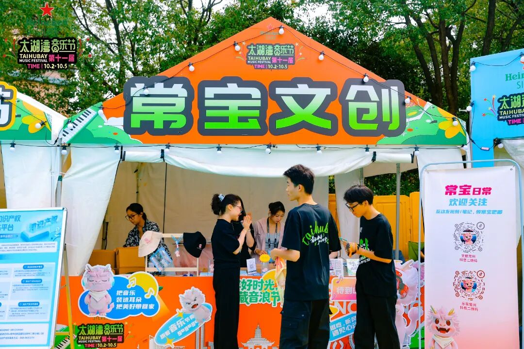 漫步在音乐节现场,仿佛置身以音乐串联的潮流盛宴。霸王茶姬、德克士等知名品牌与本土网红美食相映成趣,新推出的60余款文创产品将“颜值”与“实用”完美结合,不仅有太湖湾音乐节IP文创,更紧紧围绕常州地标、本土美食、‘苏超’故事、非遗文化推出多款产品。