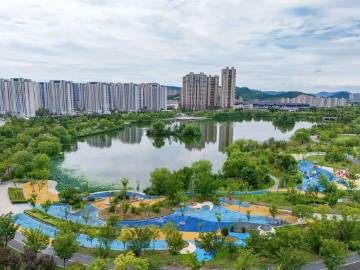 河面宛如明镜,绿树环绕成荫。位于三环西路以西,徐商公路以南的泉润公园,总建设面积约791亩,水体面积360余亩,设有综合展示区、户外运动区、老年健身区和少儿娱乐区四个主题区域,是周边居民休闲健身的好去处。