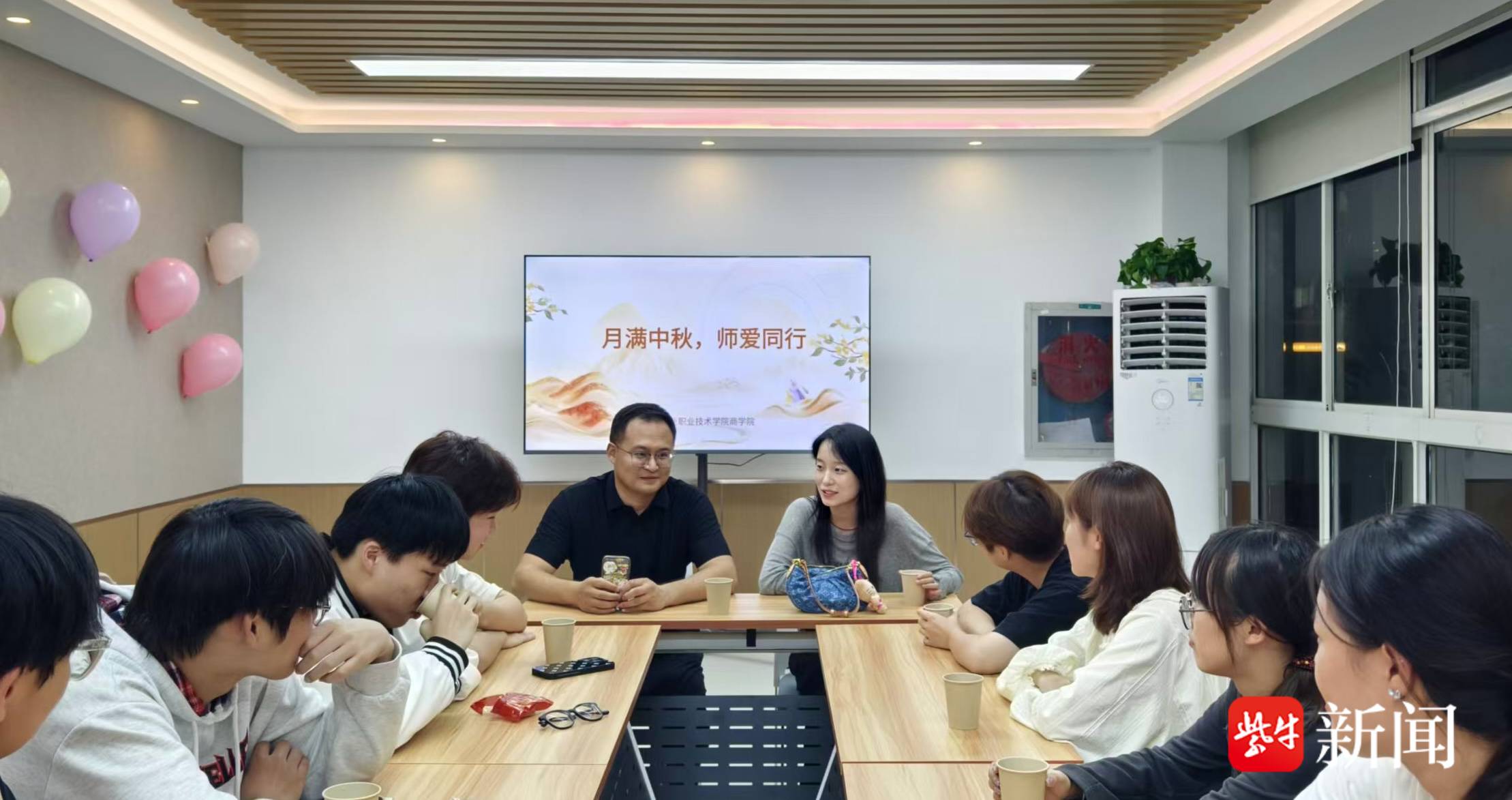 扬子晚报网10月3日讯(通讯员 王芳 记者 陈咏)“卞老师,您怎么来了?哇,还有月饼呢。”双节到来之际,扬州工业职业技术学院一站式学生社区活动室内,曾经的班主任卞老师手捧月饼,与孩子们的大学班主任刘老师一同出现在门口时,金融科技专业30余名新生都楞住了,一位学生更是喊出了声。随即,大伙爆发出欢呼声。这个节日,瞬间被温暖填满。