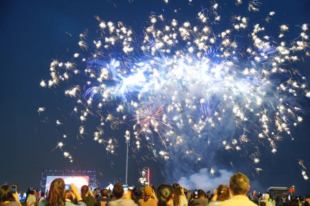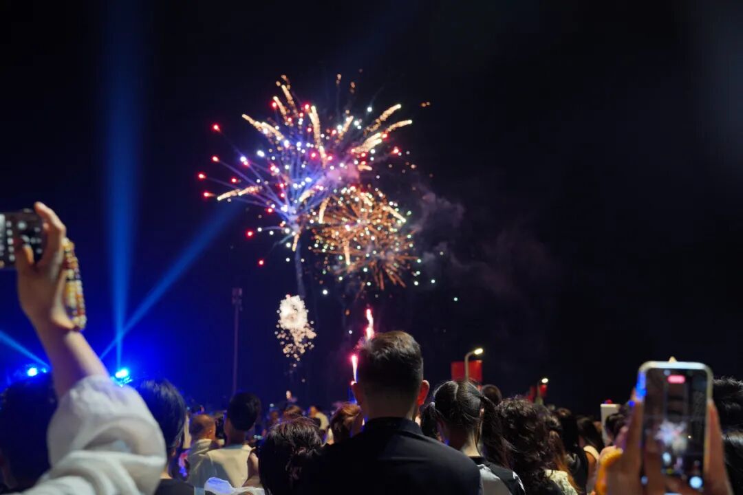 压轴的烟花秀燃亮夜空,沙滩上汇聚的人海与漫天绚烂交相辉映,沸腾人潮的欢呼、音乐与海浪声共鸣,为这个夜晚画上璀璨句点。