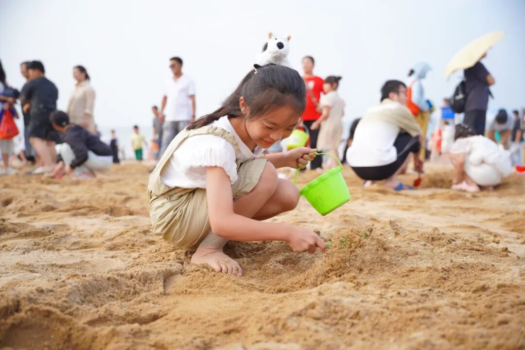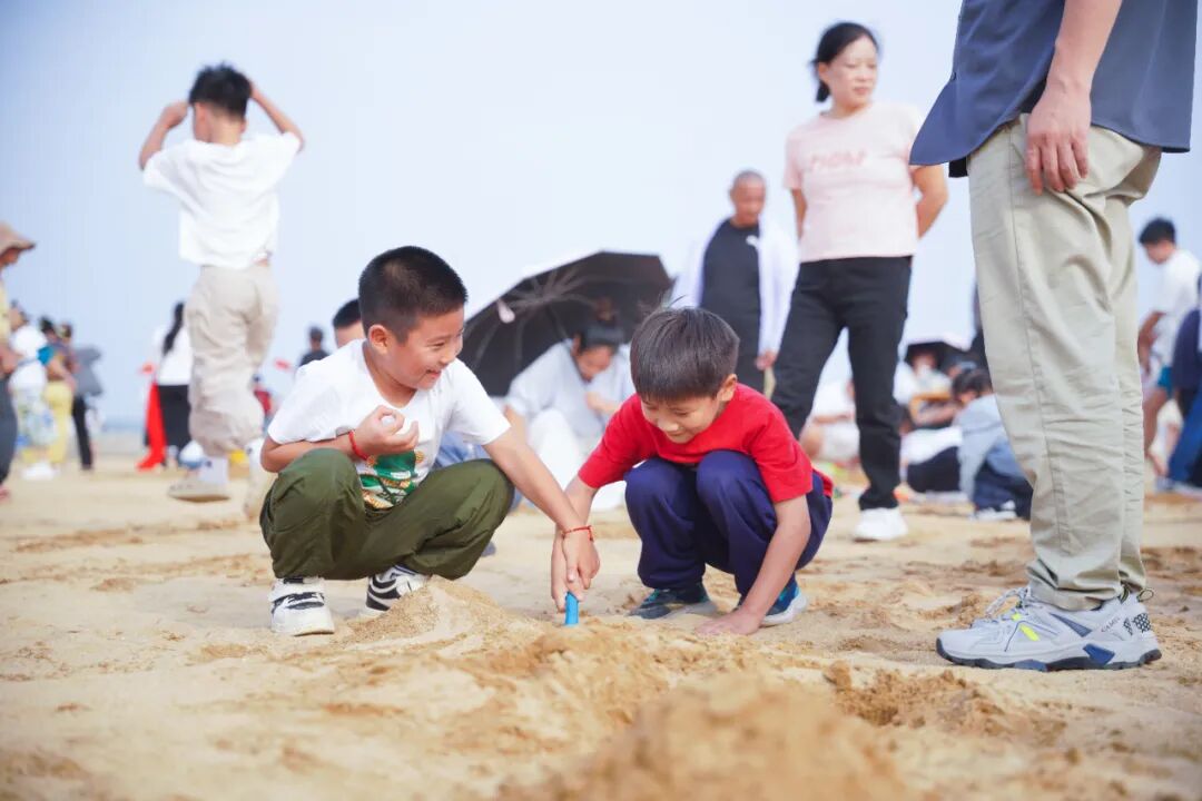 沙滩游戏持续点燃气氛,“寻宝奇兵”让孩子们玩得不亦乐乎,“点球大赛”则成为家庭竞技的欢乐战场;