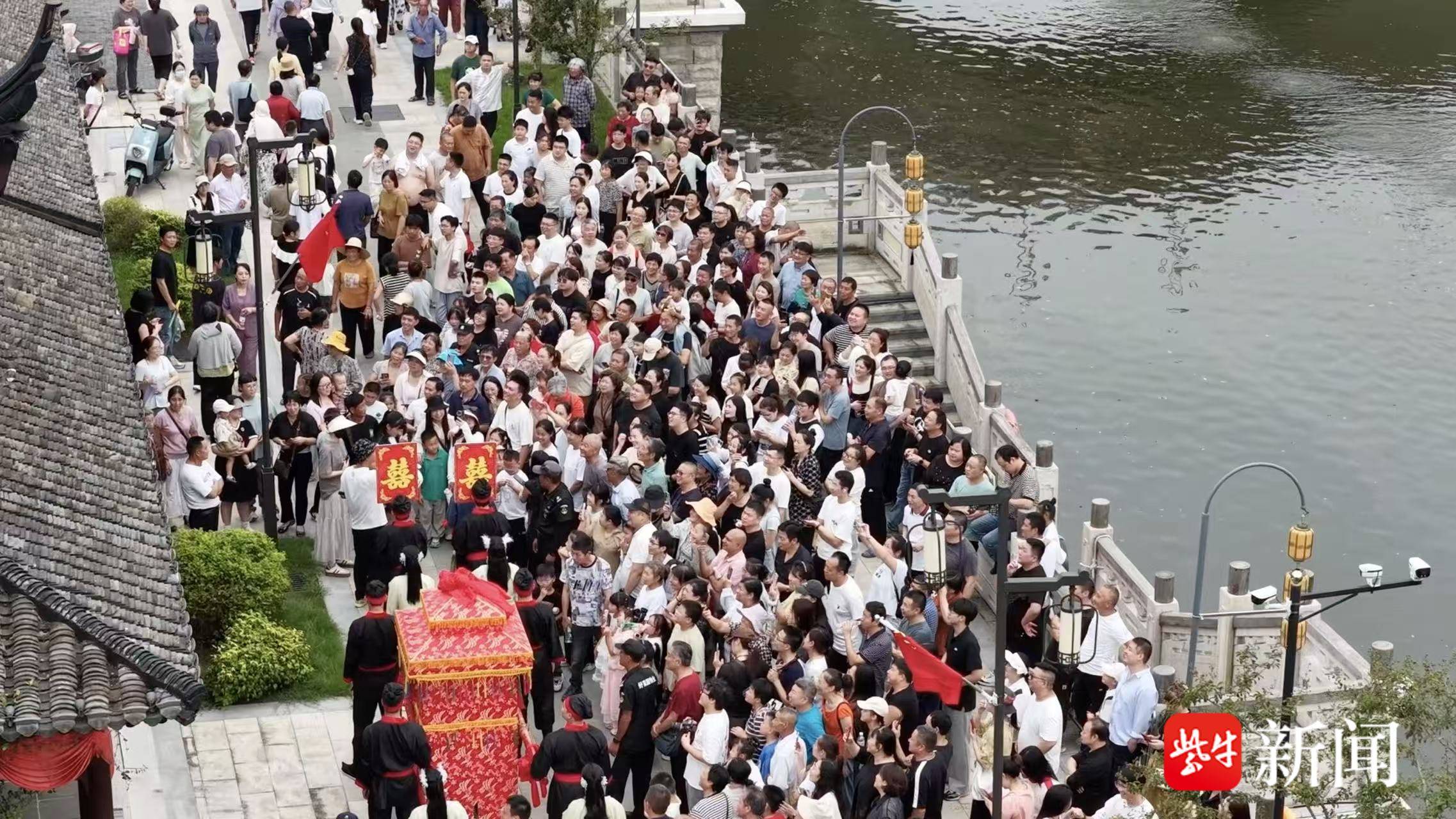 除了舌尖上的诱惑,栟茶古镇还为游客准备了“全天候、多场景”的文化体验大餐。一柱楼内,原创情景剧《御园诗劫·栟茶遗恨》、评书《三生三世一柱楼》、非遗长嘴壶、杂技轮番上演。南沙说书场的苏州评弹,以吴侬软语弹唱经典曲目,江南韵味悠悠流淌,为古镇增添了一抹雅致的文化底色。在东大街至栟河东岸的巡游路线上,女团红扇舞《雪龙吟》、抛绣球迎亲、花船演艺千年等一回、男团舞蹈《侠骨伞影》,吸引众多游客驻足。“我已经是第二次过来了,上次的印象就很好,这次氛围更浓,活动更多,很热闹,体验感特别棒。”浙江衢州的游客宁女士兴奋地说。