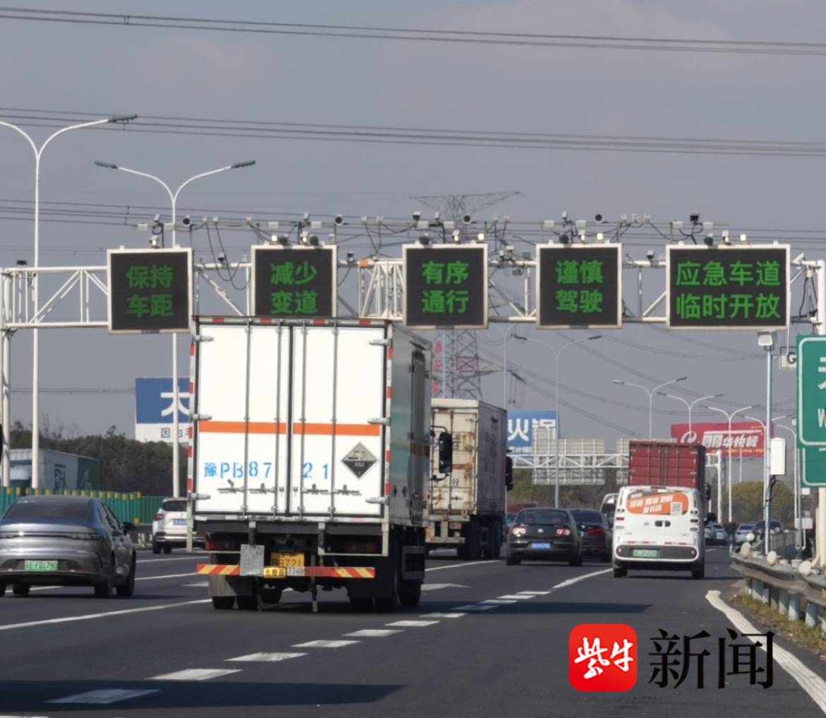 记者探访高速公路多个关键点位发现,交通、公安等部门已做好部署,开展应急车道智慧管控等措施。记者在沪宁高速公路无锡段看到,在面对大流量路段,提升通行效率,通过道路情报板、路侧指示牌以及声光警示喇叭等设备实时发布应急车道启用信息。记者在现场看到,当道路情报板出现“应急车道临时开放”的绿色字出现在显示屏上,过往车辆驾驶员根据需要自觉驶入应急车道进行分流。