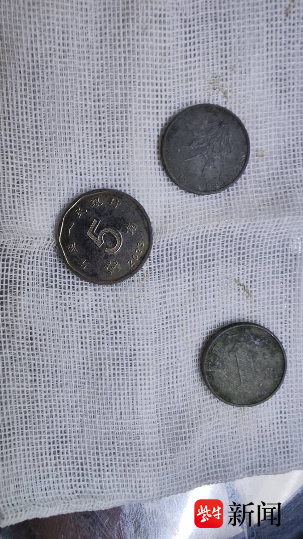 术中,医生发现三枚硬币并未分散,而是“抱团”黏附在胃小弯处。“这种情况比较少见,硬币聚集在一起,更难通过幽门进入肠道自行排出,长期滞留可能损伤胃黏膜。”淮安市妇幼保健院儿科主任医师孙佃军介绍。医生迅速使用异物网兜,精准地将三枚硬币一次性兜住、取出。术后确认,乐乐胃黏膜完好,手术顺利。