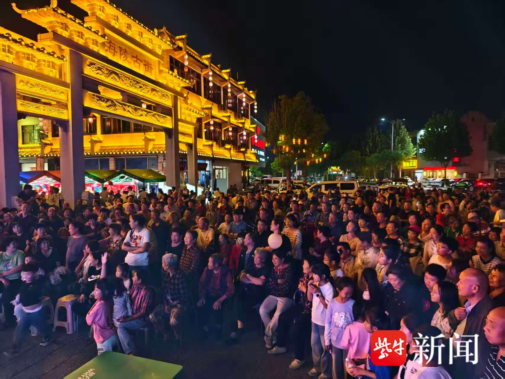 马家荡旅游景区内马良乐园气球小丑互动、漫天飞舞泡泡秀、萌宠乐园等是孩子们的乐园。景区马良湖上船头吟诵爱国诗篇、水乡故事,红色文化与湿地风光在湖面上交融共鸣,汉服巡游锦绣华服摇曳,衣袂翻飞间古韵与光影交织成画;穆沟古村一场盛大的“晒秋”正回应着季节的馈赠,金黄的玉米棒、火红的辣椒和颗粒饱满的五谷杂粮争相斗艳。这不仅是农耕文明的智慧画卷,更是一场极具视觉冲击力的大地艺术。蟹市河上鸬鹚捕鱼、河畔浣纱等场景轮番演绎,游客络绎不绝,争相打卡,漫步古村享受悠然假期;海陵古街海陵河花船表演梦幻呈现,花船摇曳、如梦如幻,河灯祈愿、鱼灯巡游浪漫登场,点点河灯载满心愿向快乐出发。益林战役纪念馆“红色大讲堂”的红色故事讲座、“开卷有益”共享阅读空间的“益”起颂祖国·红心映山河等读书活动,使“三色文旅”活动丰富多彩。