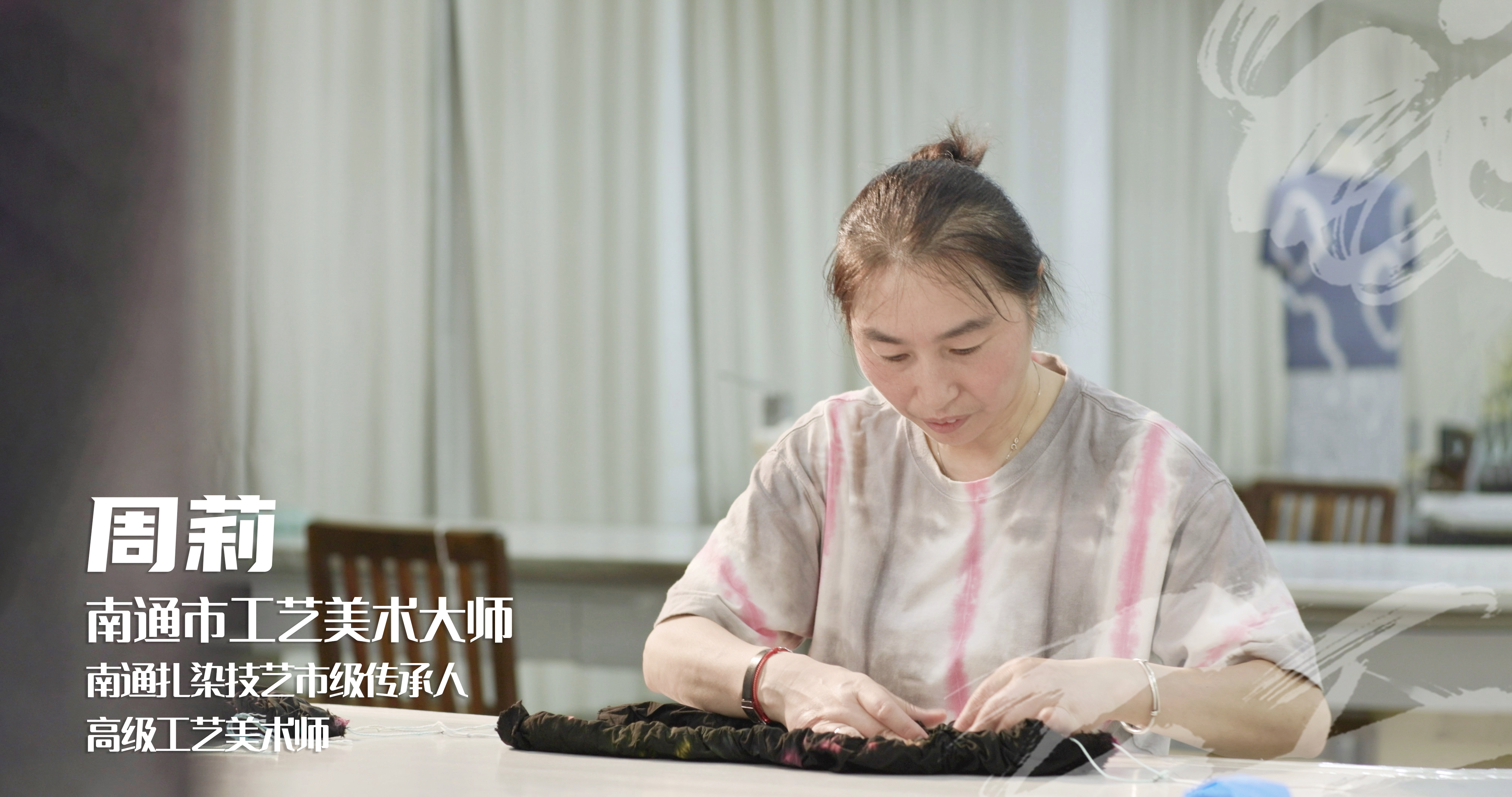 周莉,江苏华艺集团扎染事业部技术经理,南通市工艺美术大师,南通扎染技艺市级传承人,高级工艺美术师,江苏省优秀紫金青年,2023 海安名匠。荣获“紫金奖”文化创意设计大赛银奖优秀奖、华艺杯全国纺织非遗扎染技能邀请赛一等奖,长期致力于中国传统扎染工艺创新、扎染时尚应用研究、扎染非遗传承与艺术染整市场推广。主持并成功申报扎染新工艺《艺术染整冷染工艺技术的研发》高新技术产品。主设扎染非遗文创作品《蓝染新缬——新视觉艺术长巾系列》《谁持彩练当空舞——时尚扎染艺术系列》《“撞色”——新传统时尚扎染探索系列》等作品,荣获江苏省“紫金奖”文化创意设计大赛银奖和优秀奖项。周莉不仅是226高层次人才第三层次培养人才、“海陵名家”第二层次培养对象,还获评江苏省传统技艺技能大师、江苏省巾帼建功标兵、江苏省技术能手、南通市劳动模范等荣誉称号。