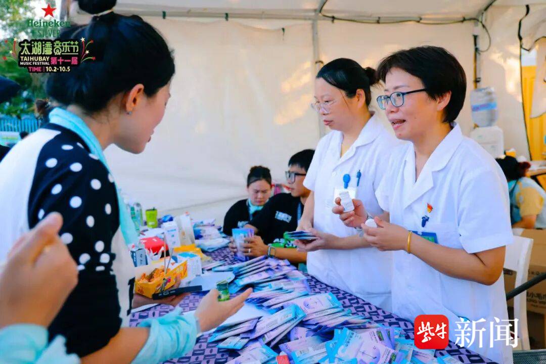 常州交警队伍4天64小时在岗,车辆突发故障,铁骑3分钟抵达、5分钟清障;市文广旅局、市文化执法支队全程服务保障;排队乐迷入场,保洁人员跟在队伍末端及时清洁,把最干净的场地留给大家;双节将至,太湖湾特别定制一万块文创月饼现场发放;应对不同天气,工作人员给每位乐迷发雨衣、在现场洒水降温。