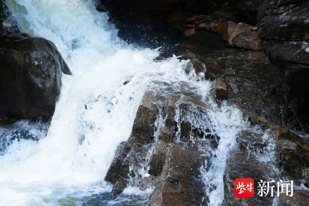 瀑布虽不及三潭壮阔,却多了几分幽深意境——水流沿着怪石缝隙层层跌落,在潭面漾开环形涟漪,与周围嶙峋的崖壁相映成趣。驻足片刻,连呼吸都变得沁凉,不愧是“天然空调”。