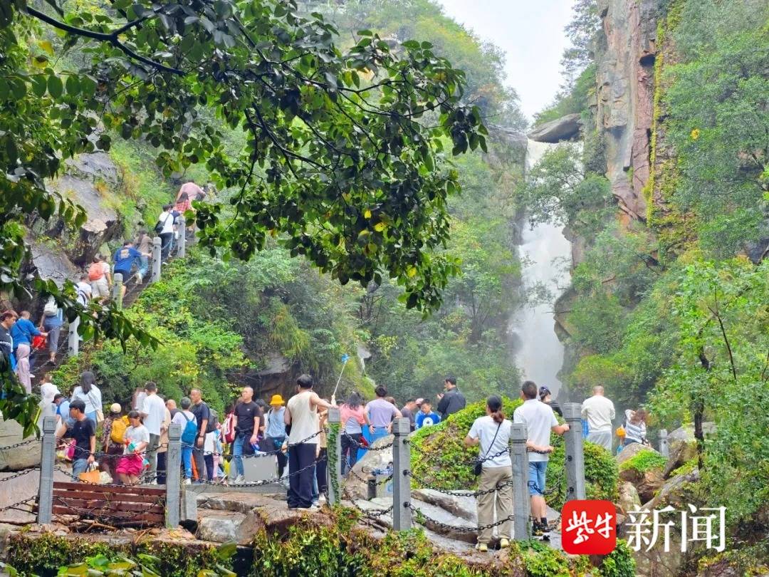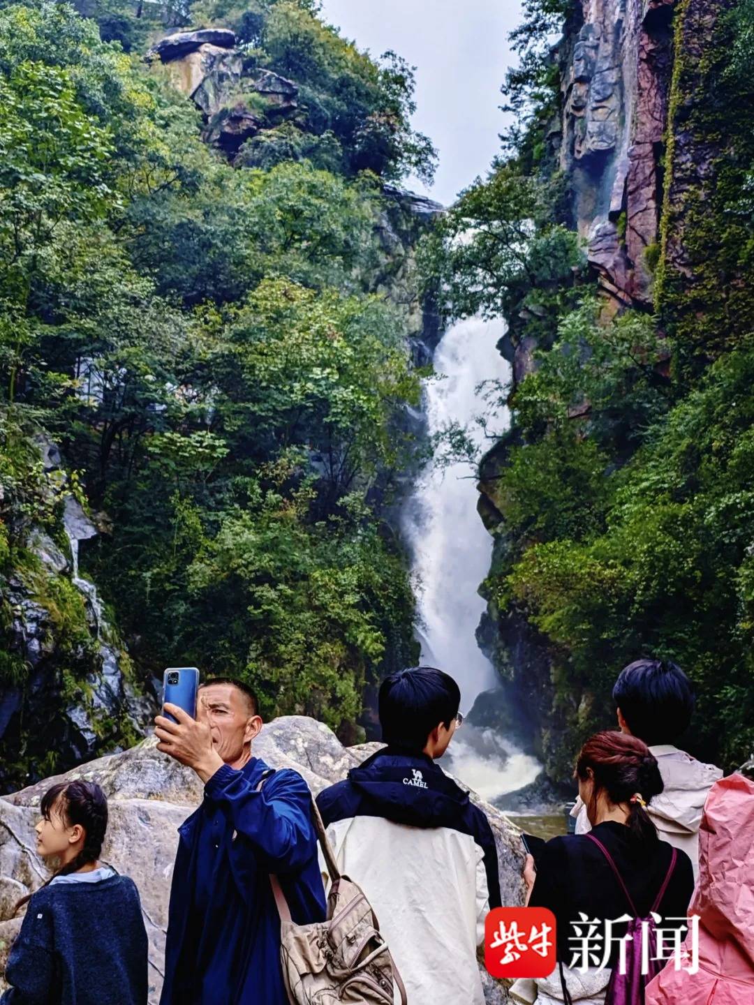 作为江苏省最高的天然瀑布,它用磅礴气势稳坐“流量C位”,几乎每位游客都会在此定格“人与瀑布同框”的经典画面。