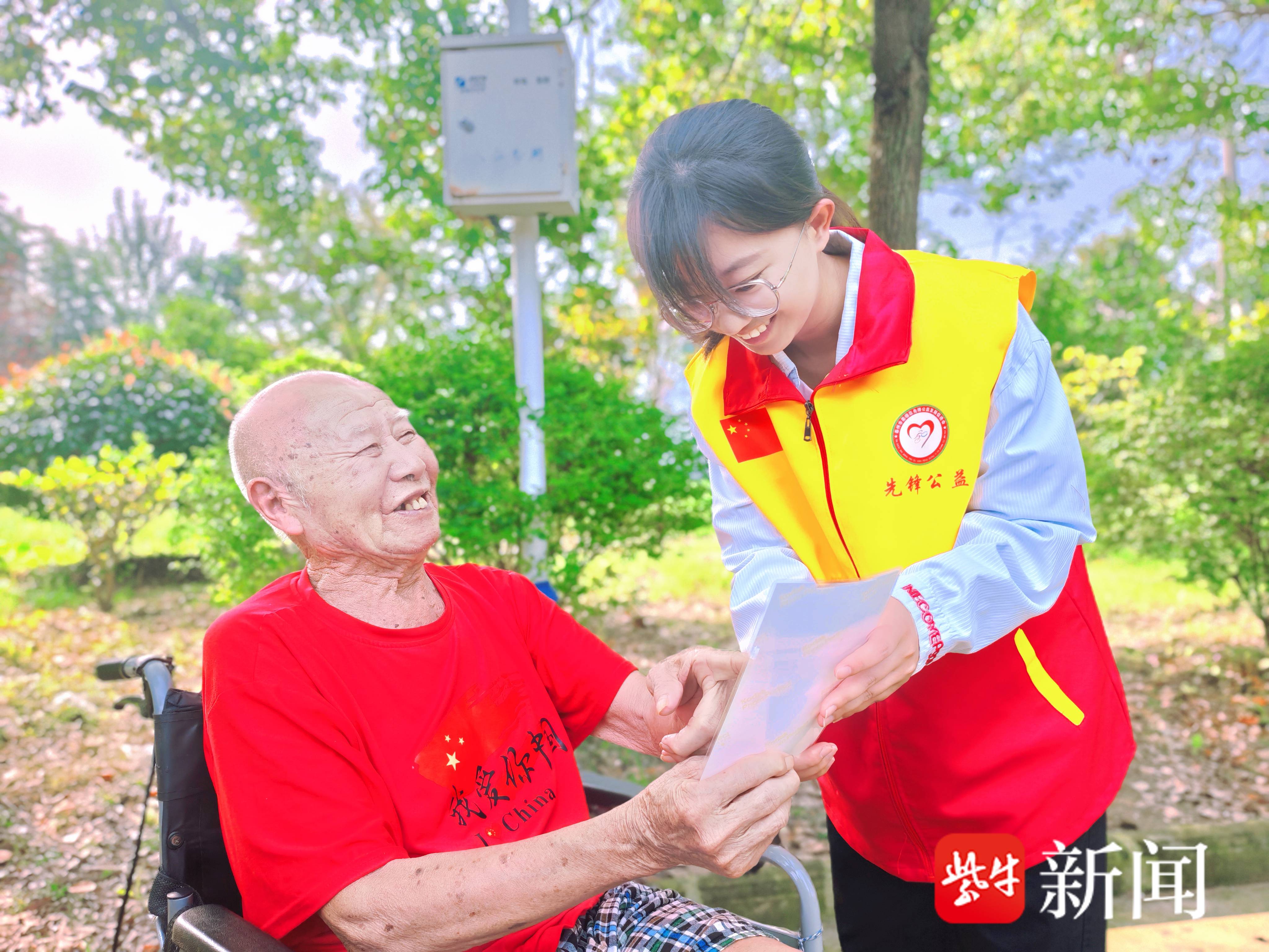 在姜堰白米敬老院,91岁的钱老手捧志愿者马天赐送来的照片,笑得合不拢嘴。在李社才院长印象里,马天赐、陈莹等同学,经常来敬老院为老人们读报,陪老人聊天,并帮助整理房间,就像老人们的孙女,老人们都特别喜欢她们。