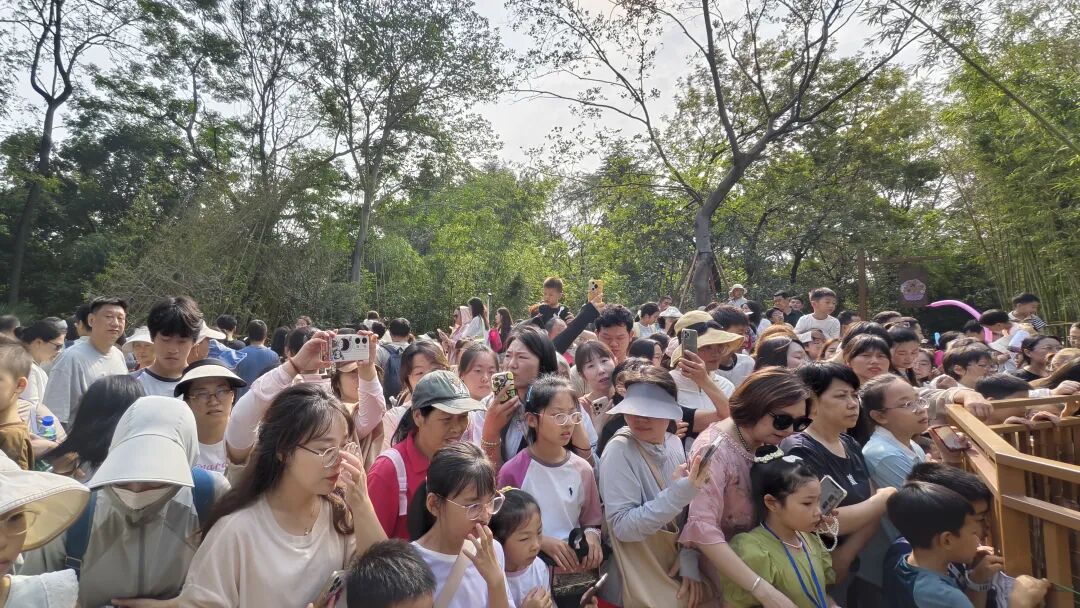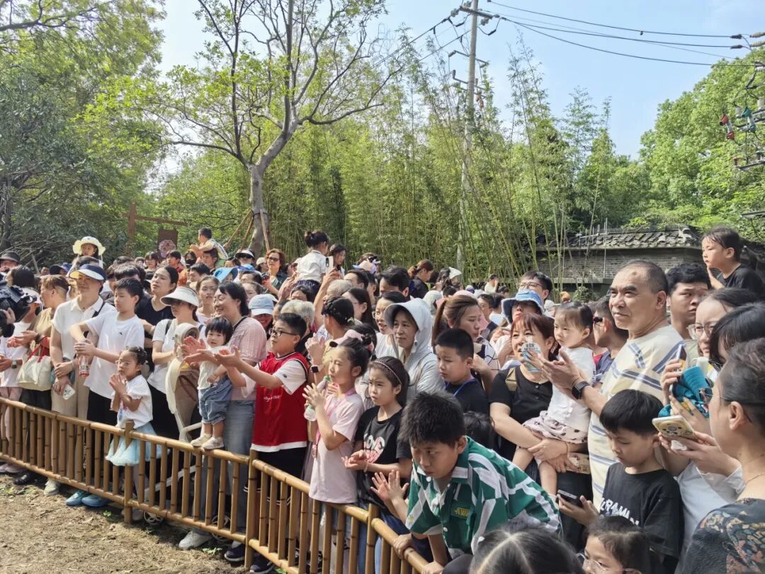 线上直播同样火爆。无法到现场的网友守在直播间,隔着屏幕为“豆包”与“核桃”送祝福。