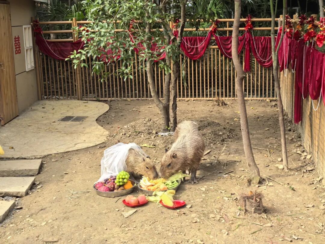 10月7日,扬州茱萸湾动物园内爱意涌动,一场专为卡皮巴拉“豆包”与“核桃”打造的“豚豚婚礼”浪漫启幕。现场游客云集,线上直播热度爆棚,这场充满童趣与温情的婚礼,不仅记录了两只卡皮巴拉的幸福时刻,更以独特方式传递了“人与自然和谐共处”的野生动物保护理念。
