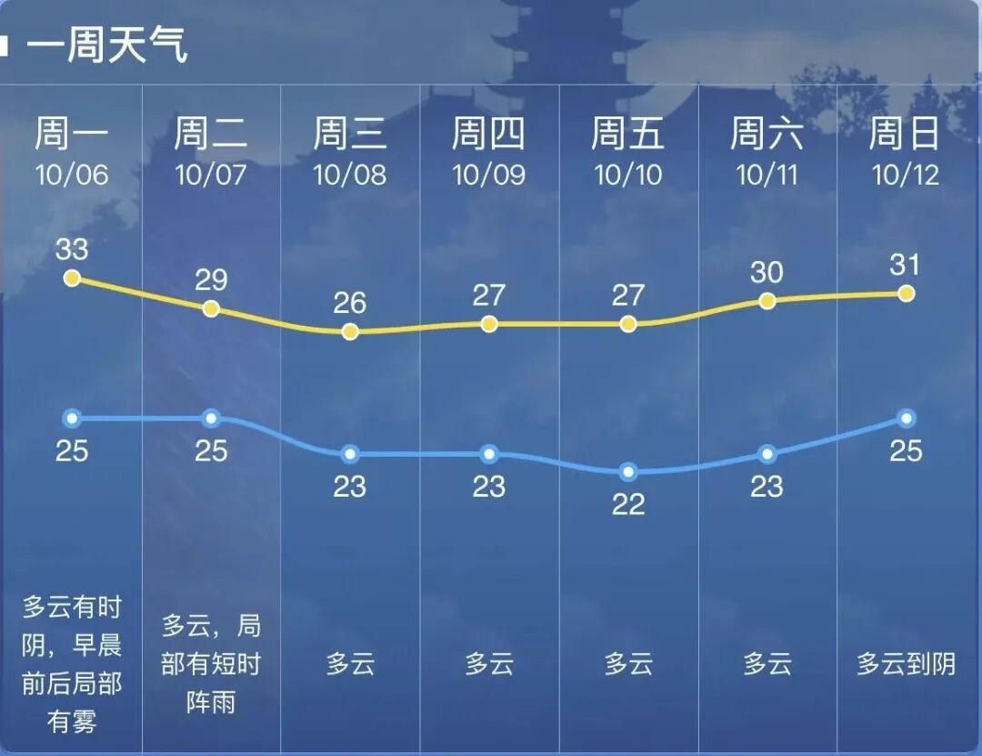 最低气温:22℃