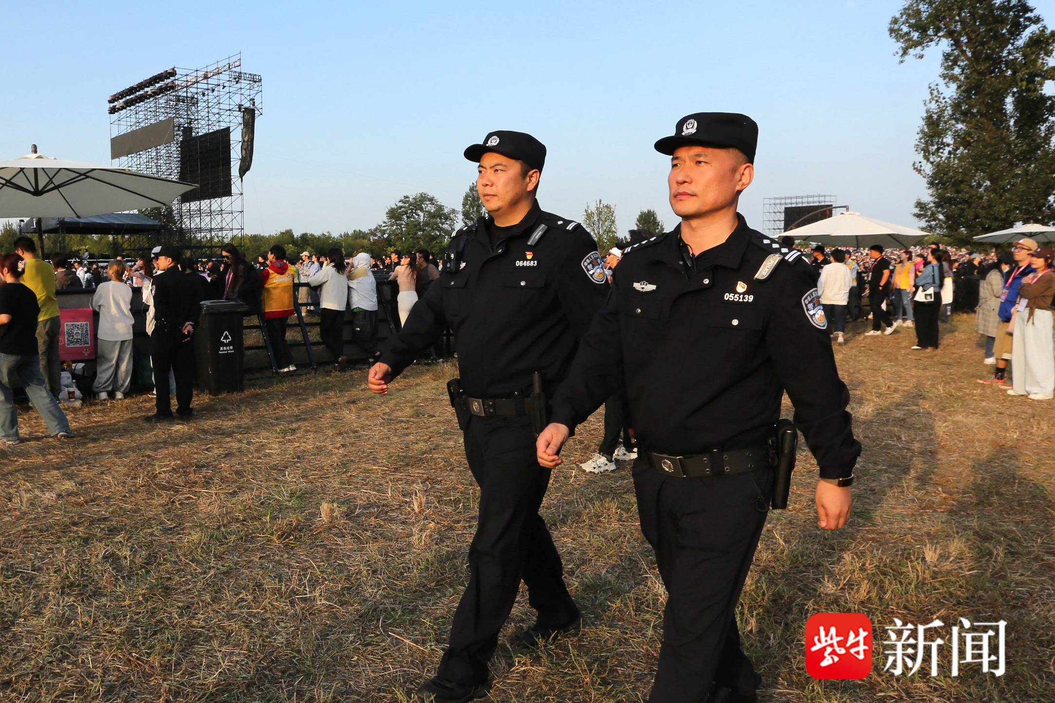 在音乐节现场,不论是丢失了身份证件,还是与同伴不小心走散,只要转身,都能看到熟悉的藏蓝身影。此时的执勤民警不仅是“活地图”和“指南针”,更是群众的安全卫士。民警耐心地为乐迷指引检票口、卫生间方位,帮助赶车的观众规划路线。这些点滴入微的服务,汇聚成这个秋日最温暖的记忆。