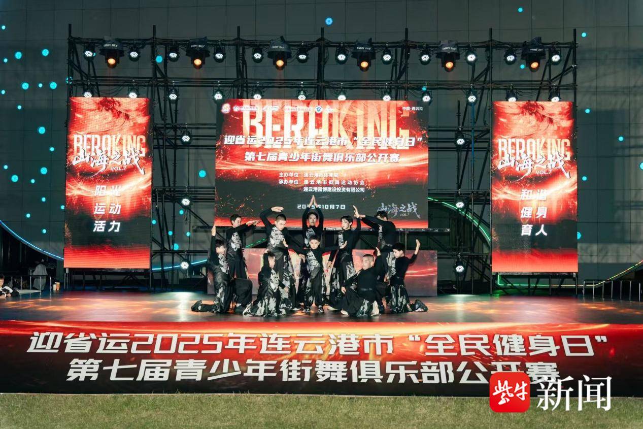 为迎接省运会,推动全民健身热潮,10月7日,2025年连云港市“全民健身日”第七届青少年街舞俱乐部公开赛在连云港园博园燃情开赛。本次赛事聚焦青少年街舞爱好者,以霹雳舞项目为核心,分两个组别,同时设置齐舞比赛环节,吸引了众多街舞少年同台竞技,展现青春活力与街舞魅力。