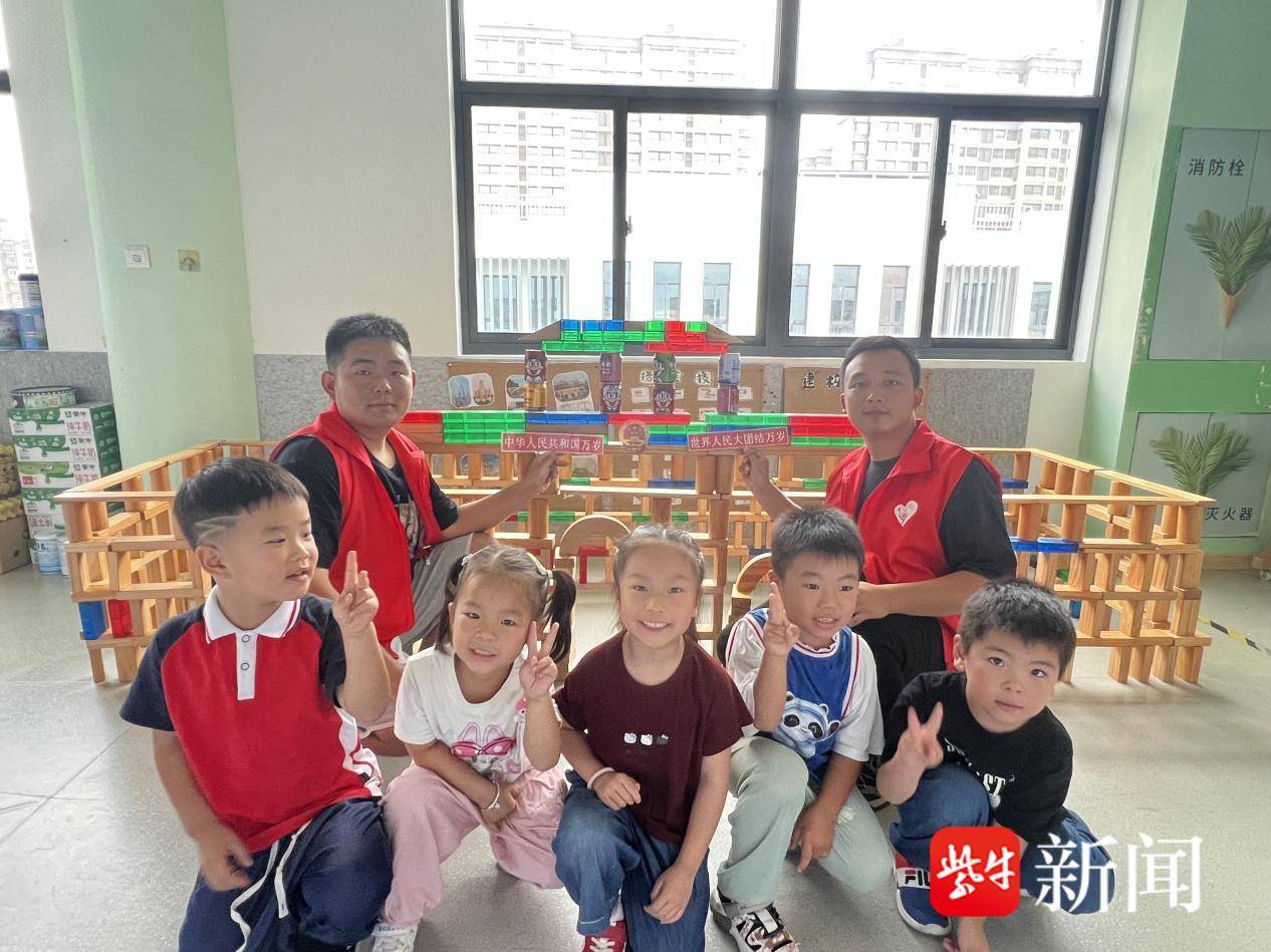 紧接着是“巧手绘长城,积木筑天安门”的创意手工环节。在老师和志愿者们的指导下,孩子们纷纷化身“小小建筑师”和“小画家”。长长的画卷铺开,孩子们用稚嫩的小手描绘出蜿蜒起伏的万里长城,每一笔色彩都饱含着对祖国壮丽河山的无限热爱。与此同时,另一组孩子们则兴致勃勃地用积木搭建起雄伟的“天安门城楼”。他们互相协作,精心搭建,当“天安门”模型成功屹立时,孩子们的脸上洋溢着成功的喜悦和无比的自豪。