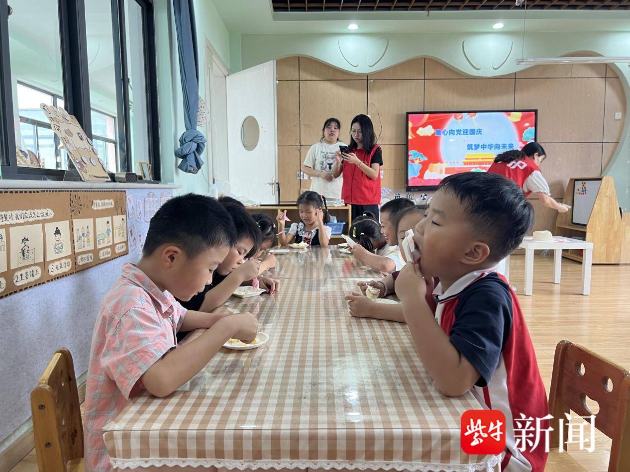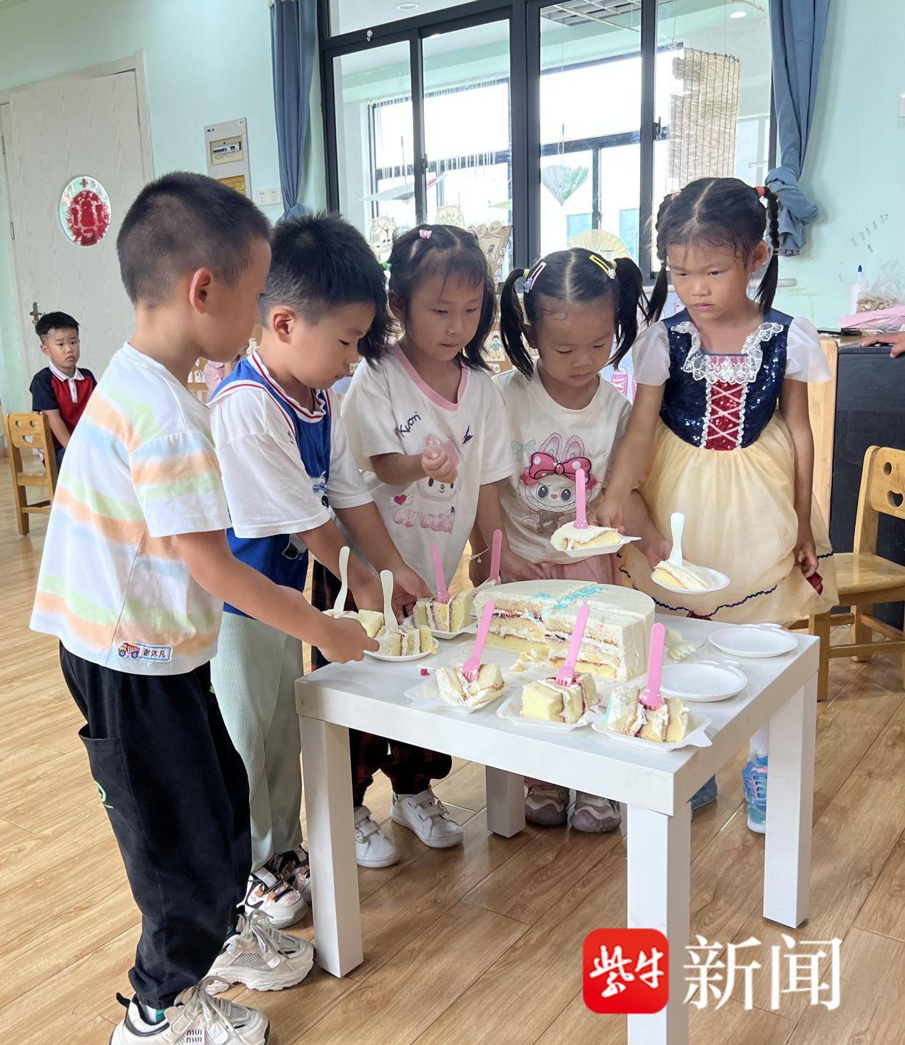活动的温馨高潮出现在“共享节日蛋糕,同祝祖国美好”的时刻。李港村党支部副书记张敏和幼儿园教师代表张老师共同点亮了特制的国庆主题大蛋糕,蛋糕上“庆祝新中国成立76周年”的字样,寄托了对祖国最深切的祝福。张敏和志愿者们将一份份甜蜜的蛋糕分发给每一位小朋友,并与他们一同品尝。孩子们吃着香甜的蛋糕,笑容灿烂,整个活动现场充满了甜蜜与欢乐。