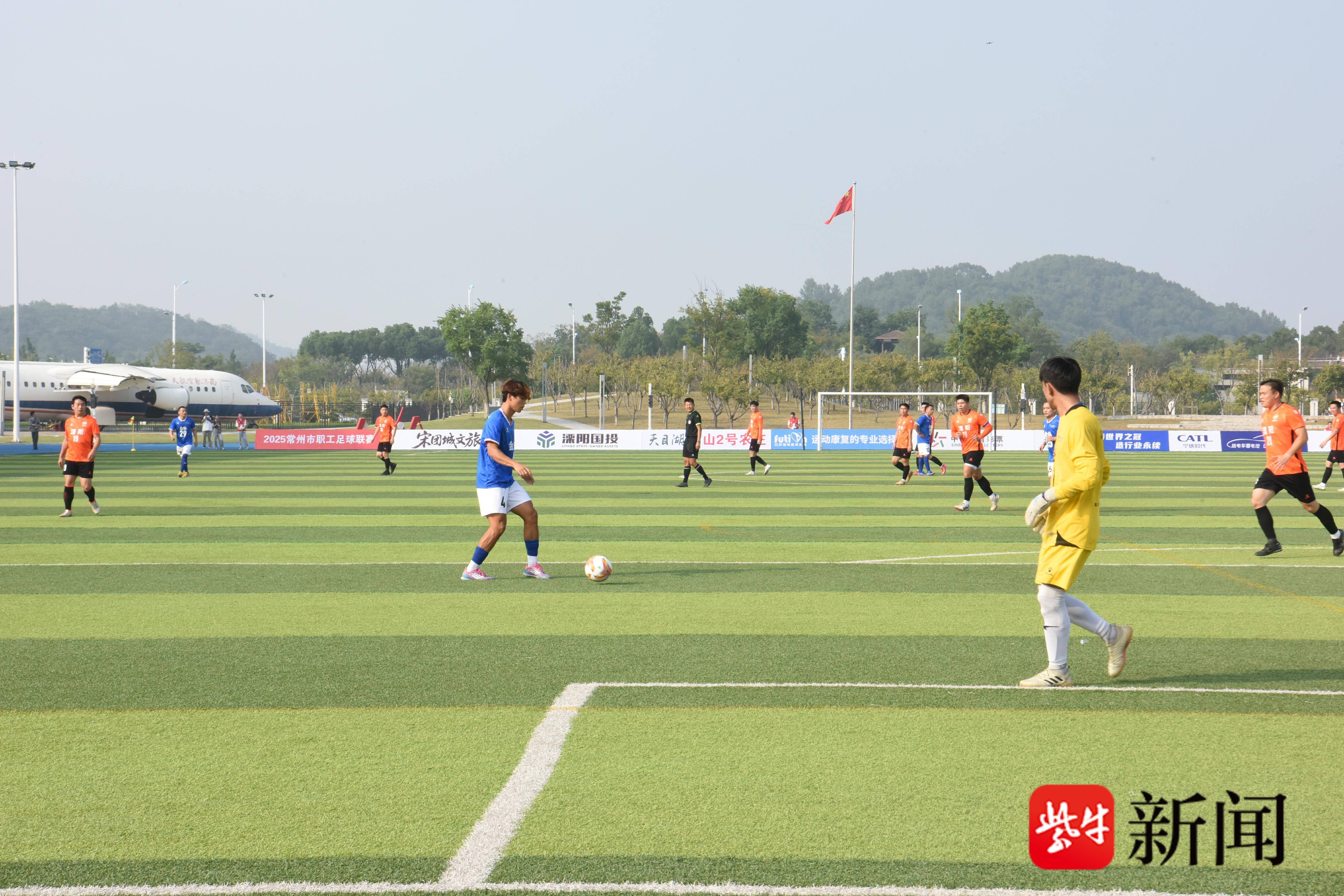 10月7日下午,2025年常州市职工足球联赛第二轮比赛在南京航空航天大学天目湖校区主赛场激情开赛。溧阳时创能源队凭借顽强的斗志与精湛的球技,以4:2的比分战胜金坛海目星激光队,为现场观众呈上了一场扣人心弦、精彩纷呈的足球盛宴。