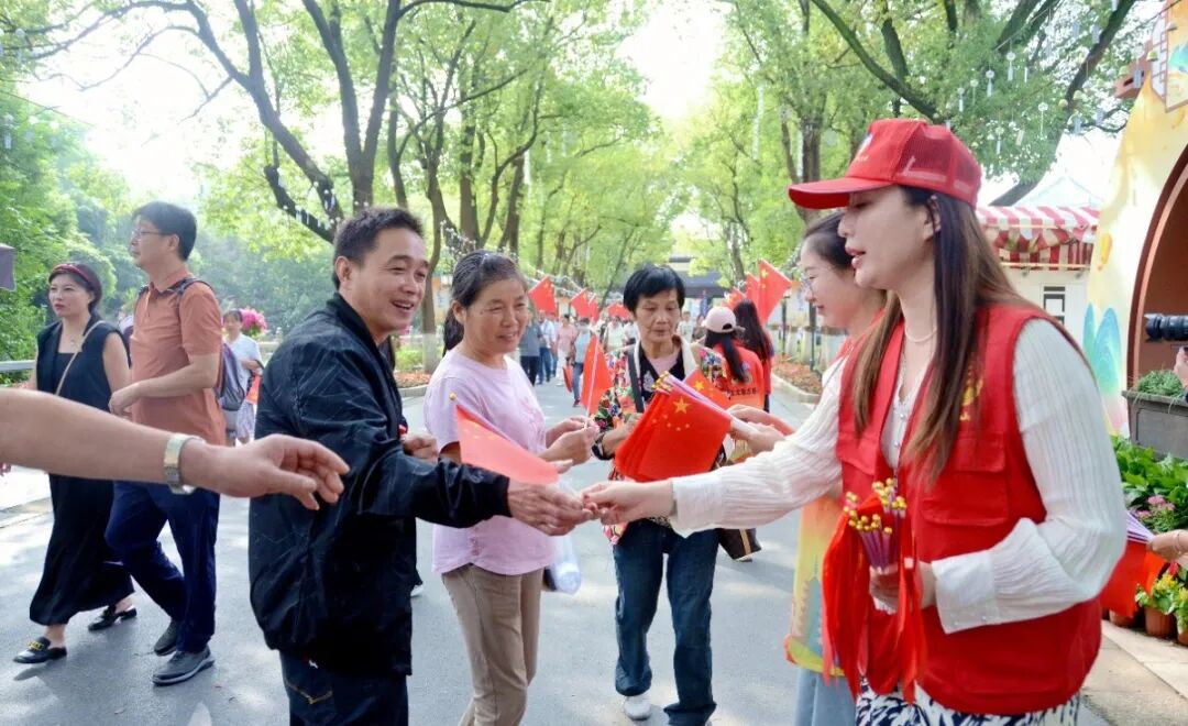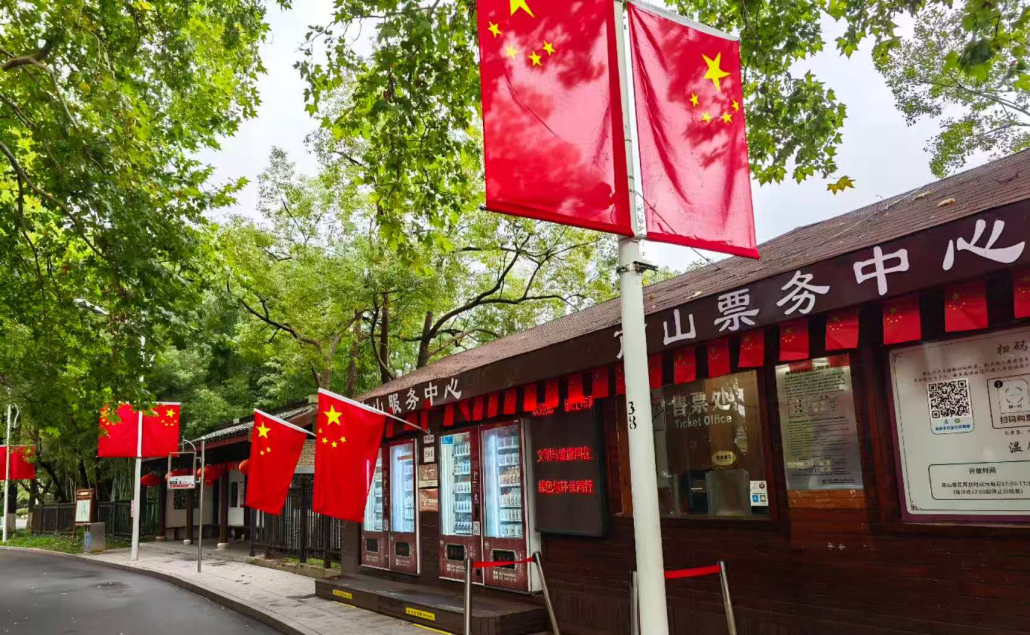 在节日氛围营造方面,镇江文旅集团以“中国红”为主色调全面勾勒节日轮廓。在各景区各处悬挂国旗和喜庆灯笼75组团,构建红色风景视觉长廊;精选时令花卉、主题道旗打造景观小品、游园花景和“精神堡垒”37处,喜庆氛围拉满。