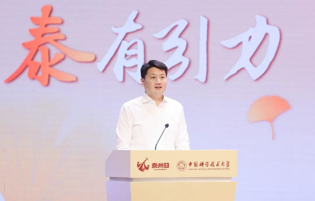 姜冬冬在致辞中代表泰州市委、市政府对中国科大给予的大力支持表示衷心感谢。在简要介绍泰州经济社会发展情况后,他说,当前泰州正聚焦打造长三角具有重要影响力的先进制造业基地,致力构建以“大海新晨”为标志的现代化产业体系,加快建设产业科创强市。中国科大是肩负国家使命、闪耀科学光芒的顶尖学府,被誉为“科学家的摇篮”。从长三角最年轻的设区市——泰州,来到C9联盟中最年轻的主角——中国科大,我们倍感自豪、满怀感动,十分期待与大家携手共创幸福、共享幸福,诚挚欢迎大家到泰州走一走、看一看。如果你选择到泰就业,全市国家级重点实验室等高端平台为你敞开,3万家工业企业求贤若渴,高层次人才事业编制助你“上岸”;如果你选择到泰创业,我们提供最高1亿元的人才专项扶持、单项2000万元的重磅资助,“孵化+导师+投资”的全链条服务为你“一键三连”;如果你选择在泰生活,我们以“中国最佳引才城市”之名,为你破解“落脚地”“另一半”“下一代”等成长烦恼。