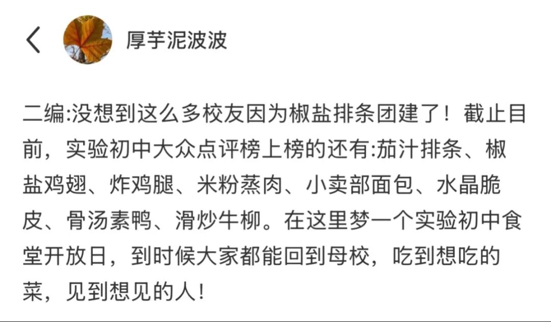 大家就一直在怀念这口“母校的味道”