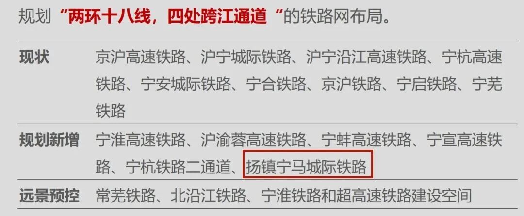 宁杭铁路二通道、扬镇宁马城际铁路等
