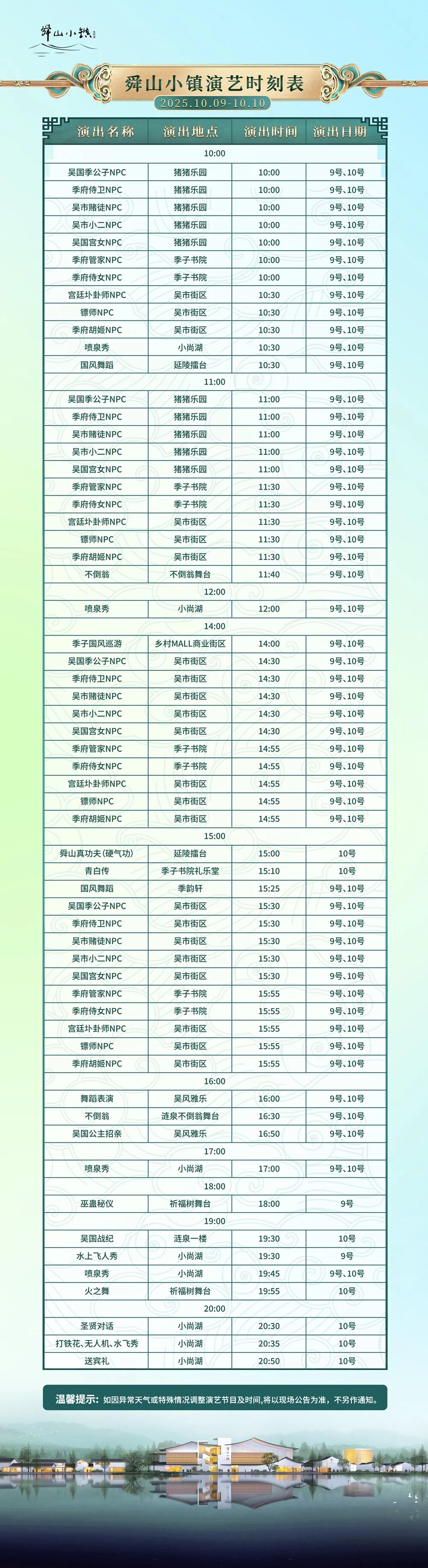 舜山小镇演艺时刻表