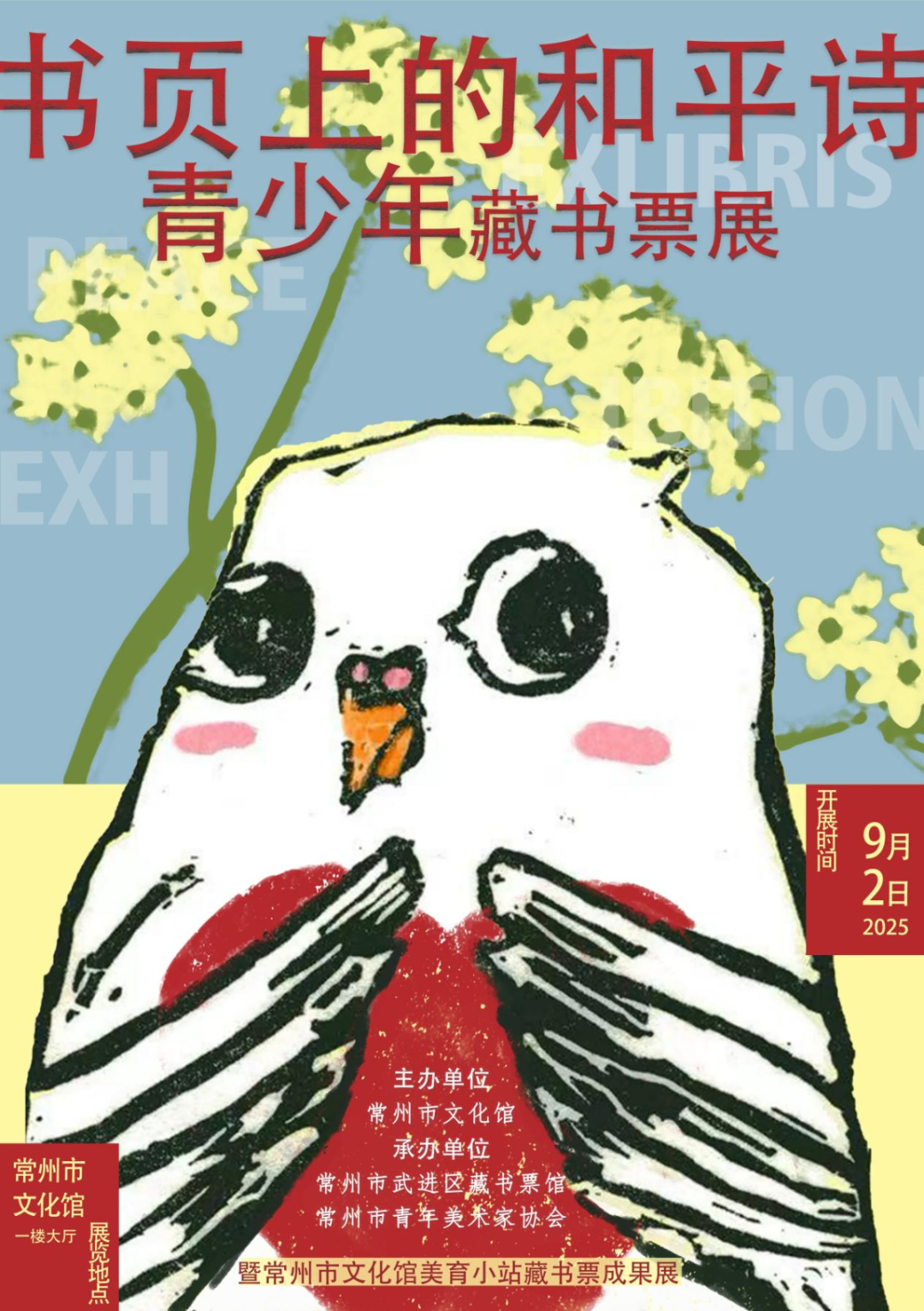 内容:本次展览以“和平”为主题,汇聚了常州市文化馆“美育小站”青少年创作的藏书票作品。这些小小画幅,不仅是书籍的装饰、所有权的标记,更是一首首无声的诗、一篇篇缩微的寓言故事。孩子们以稚拙的线条和绚烂的色彩,构建出他们心中的和平图景。让我们俯身倾听孩子的声音,看他们如何用一刀一笔,诠释“和平”这一人类永恒的命题。