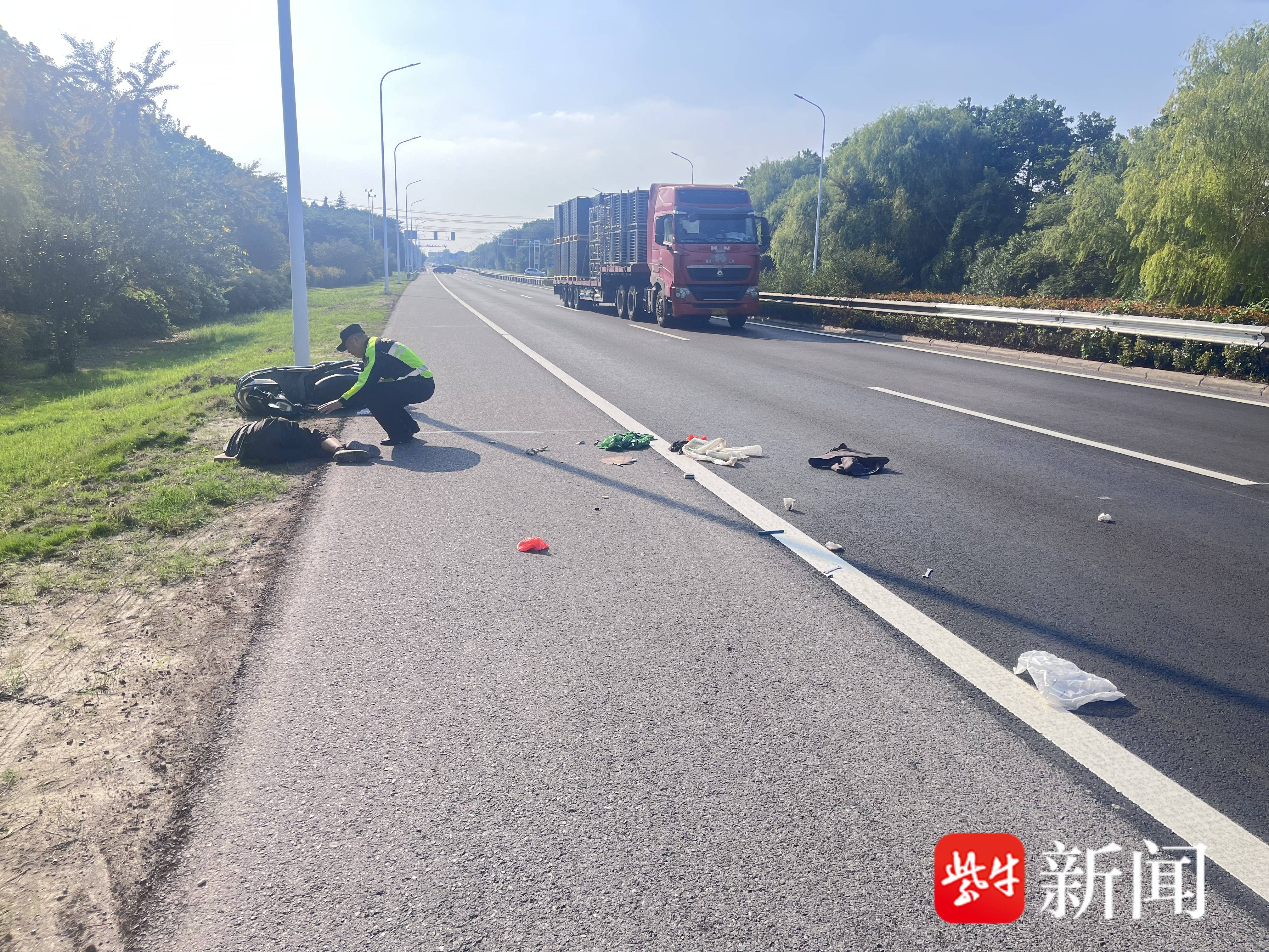 扬子晚报网讯(记者 吴佳笑 通讯员 宋晓荣 孟妍)10月10日下午,南通市交通运输综合行政执法支队海安大队流动治超中队队长孙海晋,正带领队员依照既定计划在328国道执行日常巡逻任务。行至一处车流密集路段时,前方路边的异常景象瞬间牵动了他的目光:一名男子身体扭曲着俯卧在地,其骑行的电动车、随身背包及水杯等物品散落车道,现场一片狼藉。