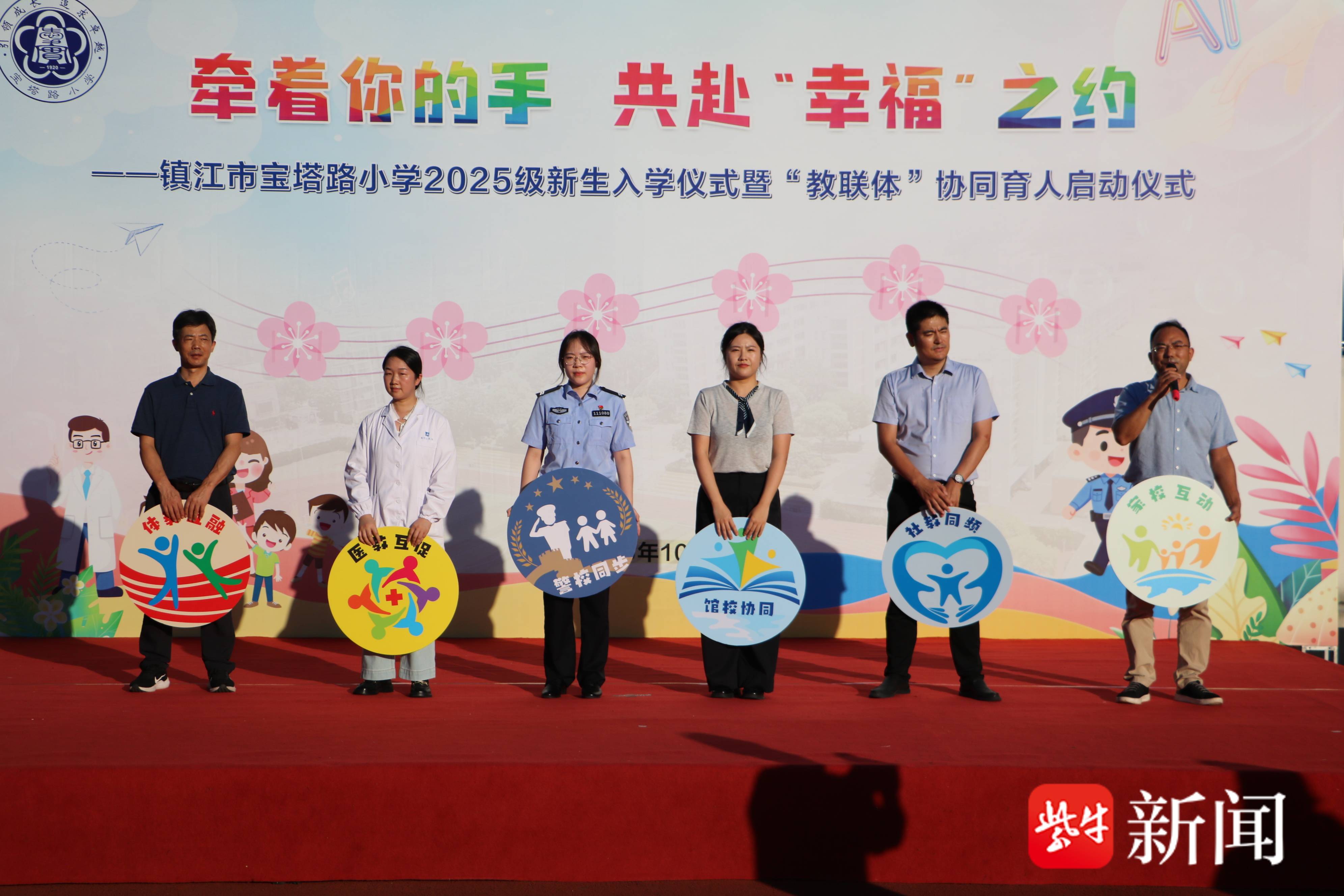 扬子晚报网10月11日讯(通讯员 张楠 记者 万凌云 姜天圣)10月10日上午,以“牵着你的手,共赴幸福之约”为主题的镇江市宝塔路小学2025级新生入学仪式暨“教联体”协同育人启动仪式在校园内举行。作为镇江市公安局未成年人保护“守望联盟”成员单位,润州分局宝塔路派出所受邀参与,与全校师生共同见证新学子的成长起点,携手绘制“警校共建”的平安蓝图。