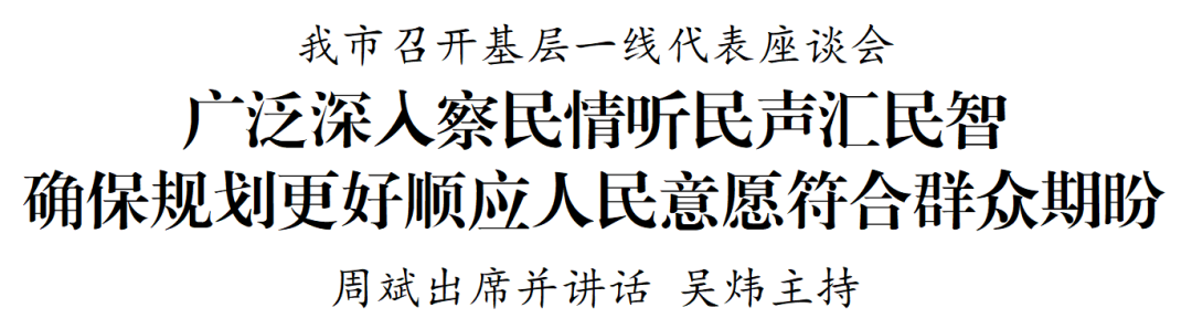周斌认真听取发言,肯定大家研究深入、分析透彻,要求有关部门强化研究论证,充分吸收基层一线在实践中创造的新鲜经验,科学精准编制“十五五”规划。周斌强调,“十五五”时期是基本实现社会主义现代化夯实基础、全面发力的关键时期。要把共同富裕作为根本追求,锚定高质量发展目标,坚持政府有形之手、市场无形之手、群众勤劳之手同向发力,提高经济发展水平,勤劳致富、积累财富,共同创造全市人民幸福生活。要把公共服务作为最大普惠,不断增加服务供给、创新提供方式,提升共建能力和共享水平,推动更多资金投资于人、服务于民生,持续提高人民群众的收入含金量、生活幸福感。要把问计于民作为重要路径,坚持贴近百姓、贴近民生、贴近基层,拿出更多实招硬招,切实解决城市内涝、停车难等群众的急难愁盼,不断满足人民群众对美好生活的向往。