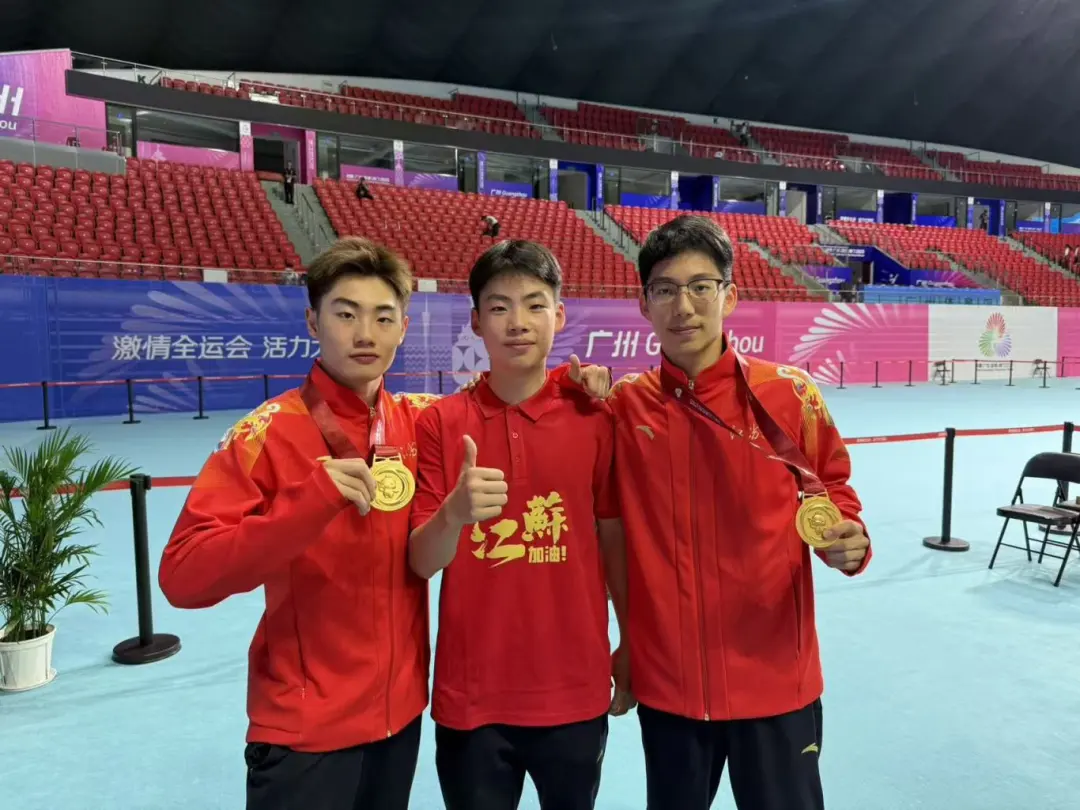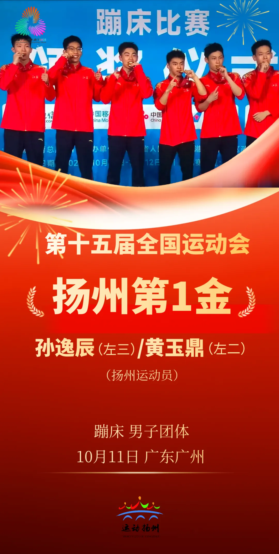 此次代表江苏队征战全运会蹦床比赛的三名扬州籍运动员孙逸辰、黄玉鼎、王华昊,均是扬州市体育运动学校培养输送。这枚蹦床金牌也是扬州运动员在本届粤港澳全运会上收获的首枚比赛金牌。