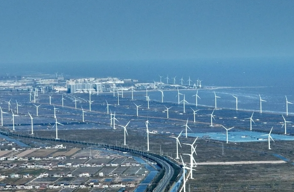 金秋时节,江苏省启东市近海海域风机林立,白色“大风车”迎风转动,将绿电持续输往长三角电网。据统计,2025年前三季度,江苏省启东市海上风电场累计实现发电量约18亿千瓦时,日均发电约660万千瓦时,可满足3.5万户家庭一月用电需求。