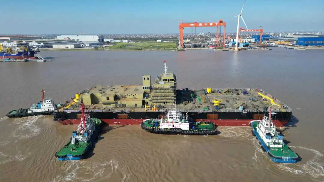 投用后,该船将刷新波斯湾及非洲地区同类船舶起重纪录,为海上模块安装、海上风电建设、桥梁吊装及大型工程船舶总装等任务提供核心装备支撑。其顺利吉水为明年如期交付奠定坚实基础,未来将成为服务中东地区基础设施建设与清洁能源发展的“主力军”。