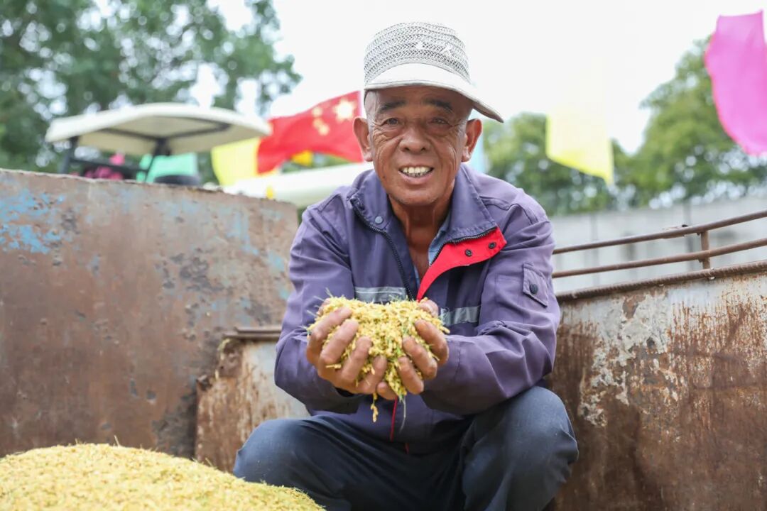 东南村共种植水稻约133公顷,目前正在集中收割的是约33公顷有机认证的“软玉”品种。“今天收的都是有机水稻,普通绿色认证的水稻还没开始收,要等到10月下旬。”东南村有机稻米种植专业合作社种植大户谢岳伟说,“得益于良好的天气、专业的技术指导和到位的田间管理,今年有机水稻亩产达700至800斤,较往年增产30%,是连续九年获得有机认证以来收成最好的一年。”
