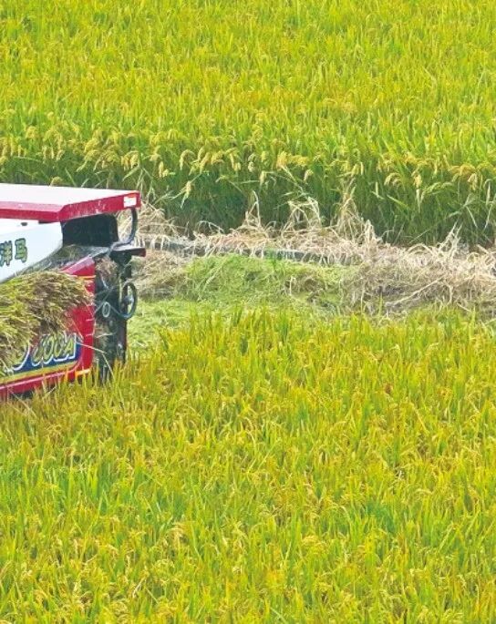 轰鸣声中,切割、脱粒、秸秆粉碎等工序一气呵成,金黄的稻谷如流水般源源不断地涌入运输车,田间地头处处洋溢着丰收的喜悦。