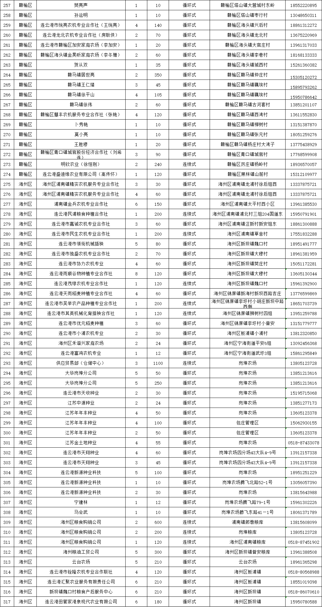 市粮食烘干服务点联络信息公布