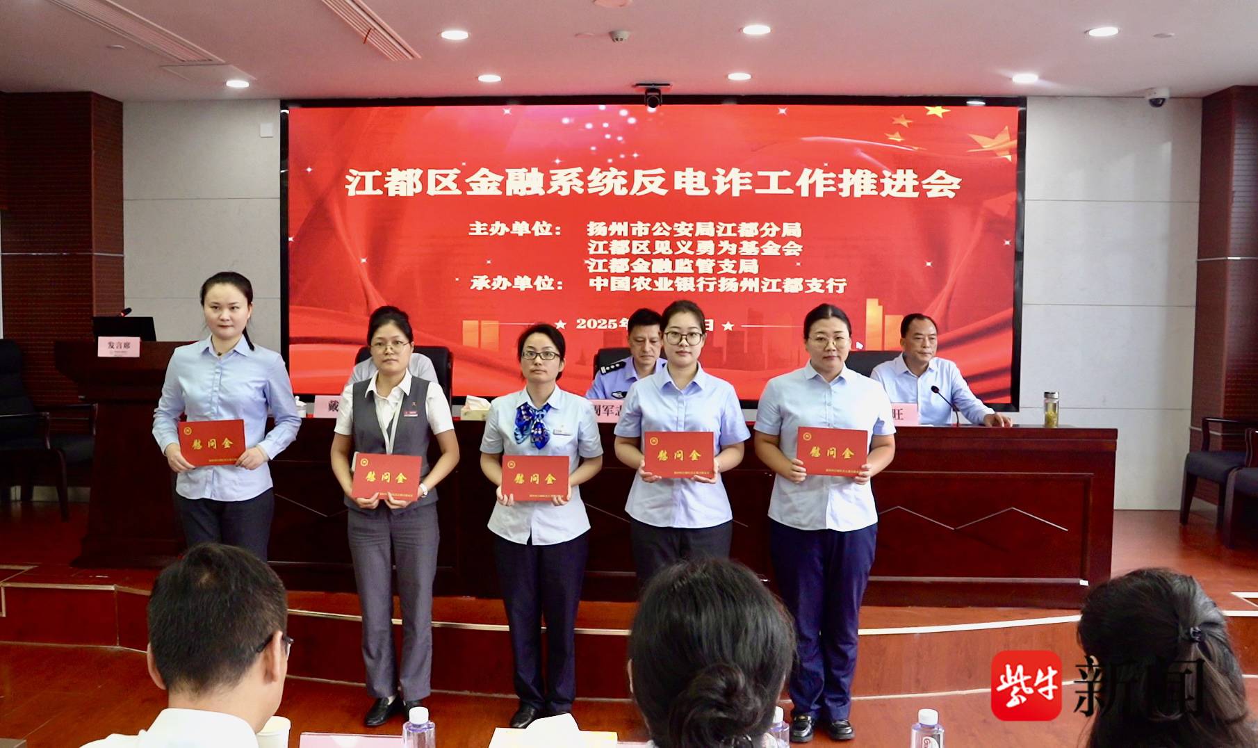 扬子晚报网10月15日讯(通讯员 江公 记者 陈咏)15日,扬州市公安局江都分局联手江都区见义勇为基金会、区金融监管支局召开反诈推进会,区见义勇为基金会现场表彰了5位机智又勇敢的银行小姐姐。她们分别是中国农业银行扬州武坚支行的刘昊璐、马慧,广发银行扬州江都支行的桑帅萍、黄璐,以及中国建设银行扬州江都支行的王宏艳。